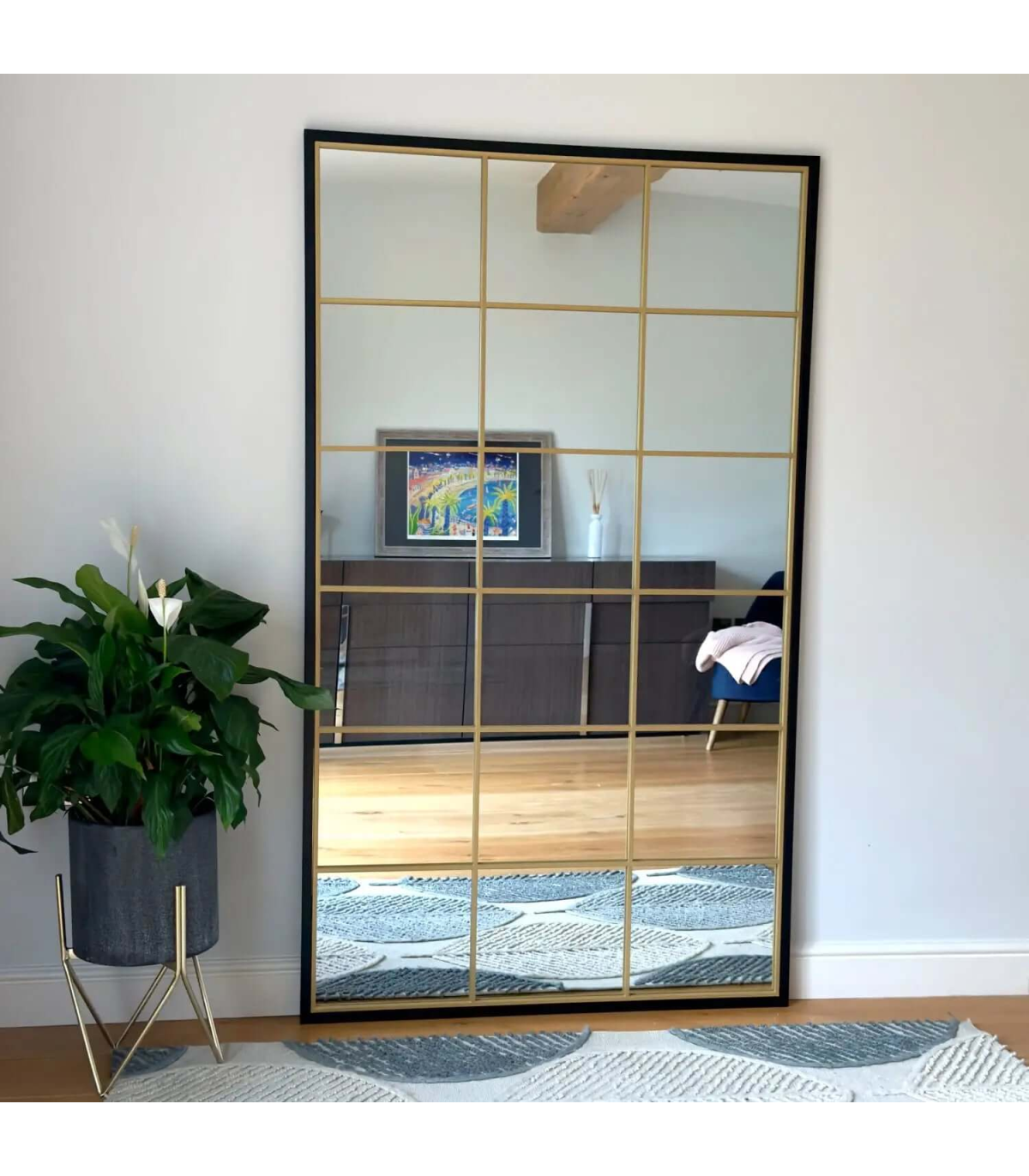 The Kyō mirror range is a fantastic addition to any home décor, offering a distinctive and timeless window pane design that instantly enhances any space with luminous reflections and an expansive feel. The chic modern frame, reminiscent of a gold metal rectangle, is expertly crafted with hand-welded joints that are nearly imperceptible, delivering a high-end finish while seamlessly integrating with a variety of décor styles, including those featuring a metal rectangle lattice or rectangle lattice grid aesthetic.