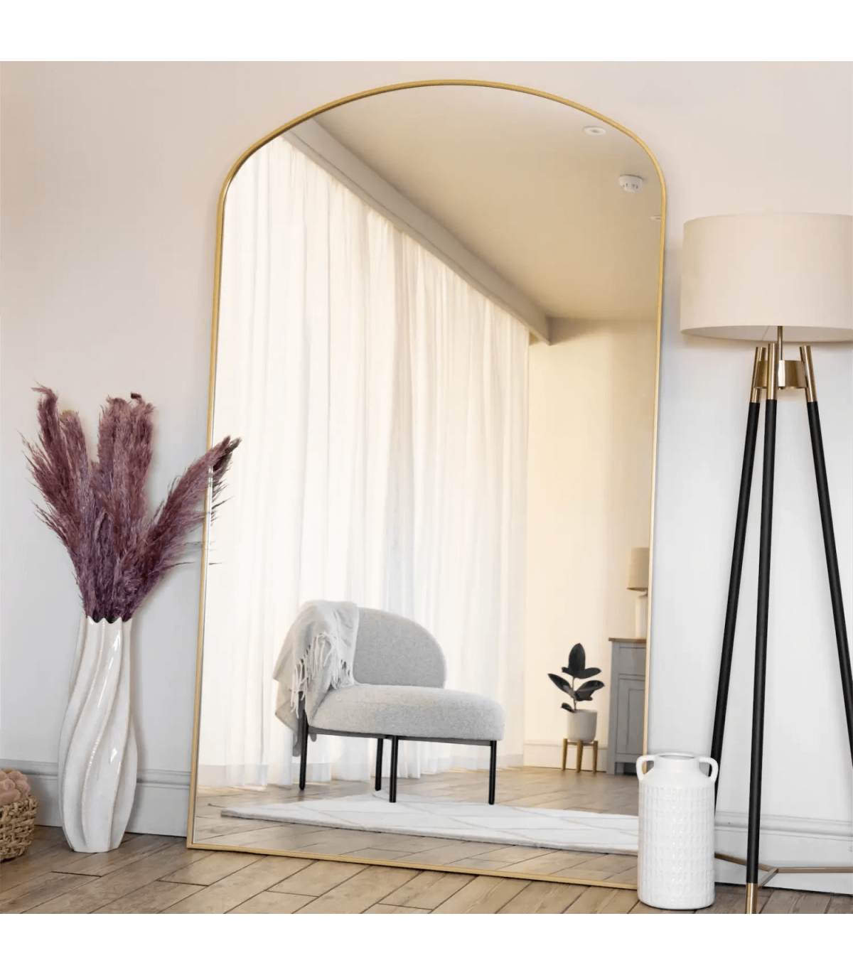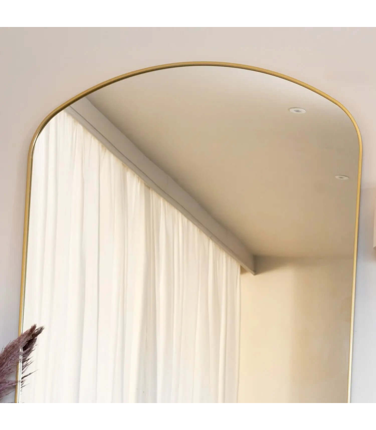 With its generous reflection area, the Yōko mirror is an ideal addition to bedrooms or entryways. Built with sturdy materials for exceptional durability, this metal gentle arch mirror seamlessly complements a variety of interior design styles, providing a sophisticated accent to your environment.