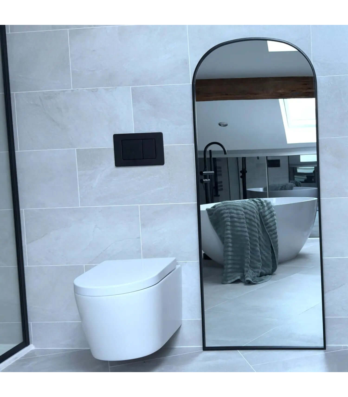 The Yōko Metal Gentle Arch Mirror features a subtly refined upper curve compared to our Akiko range, exemplifying a perfect fusion of contemporary aesthetics and practical sophistication. The striking black metal frame coupled with its gentle arch design emphasizes the mirror’s role as both a focal point and a functional accent piece in modern interiors. As a metal gentle arch mirror, its design is crafted to enhance your space with a blend of elegance and architectural clarity.