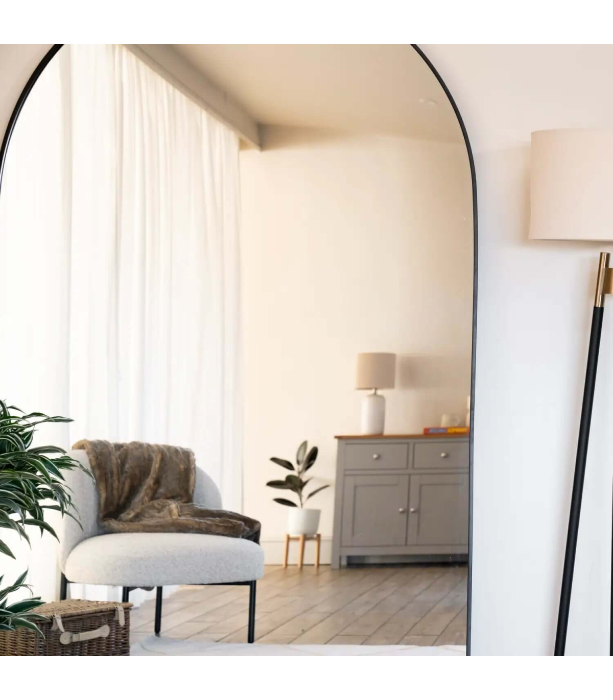 Positioned within our luxury, extra-large range, the black arched metal mirror features a flawless reflection area that is ideal for both bedrooms and entryways. This mirror provides an expansive viewpoint while maintaining an air of refined understated elegance.