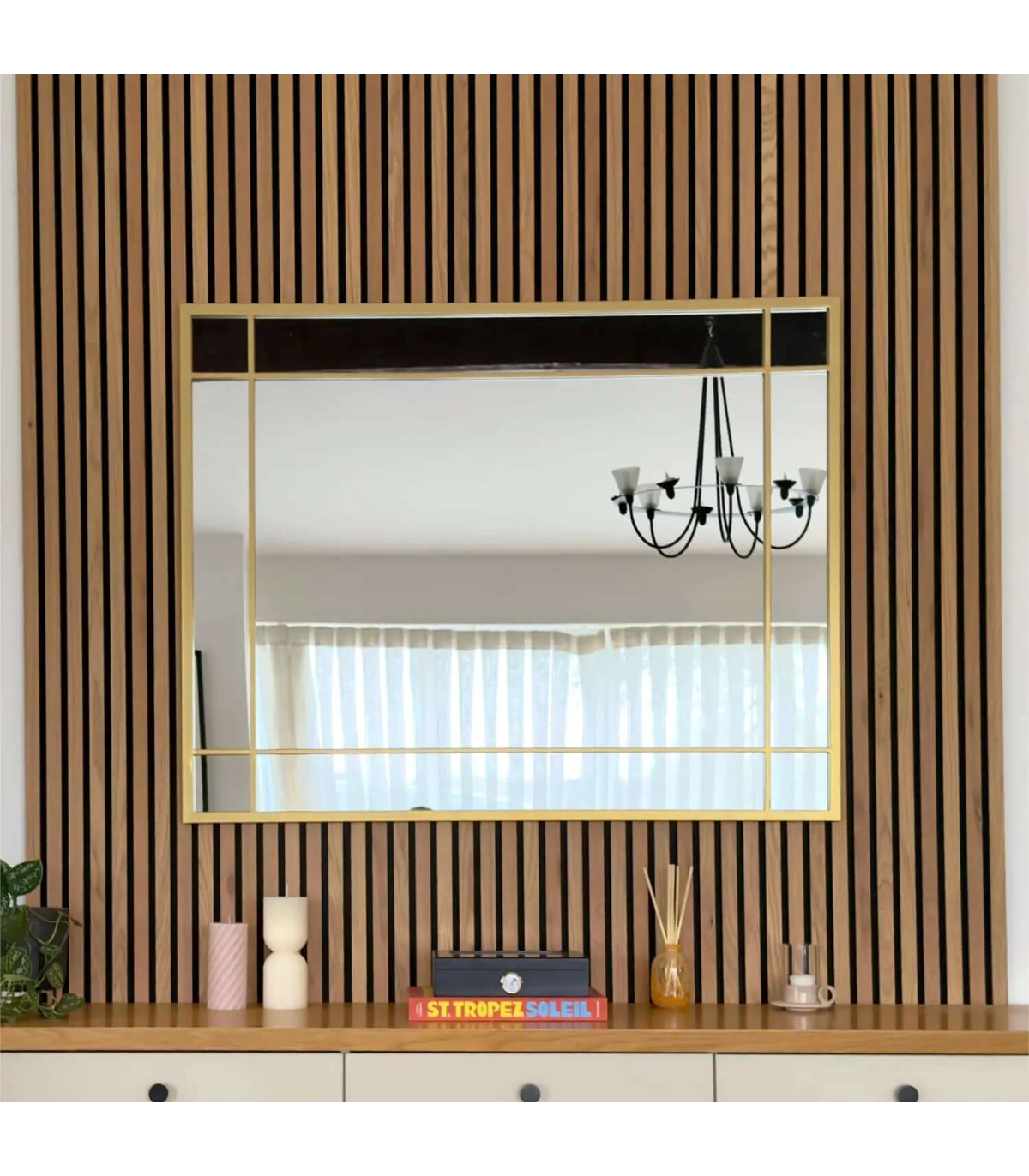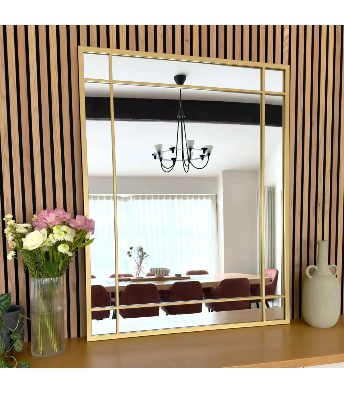The Aimi Gold Window Mirror is available in multiple sizes and finishes, allowing you to find the perfect match for your interior style.