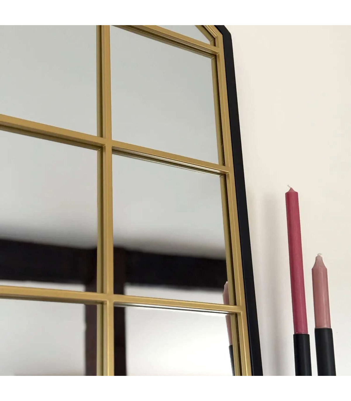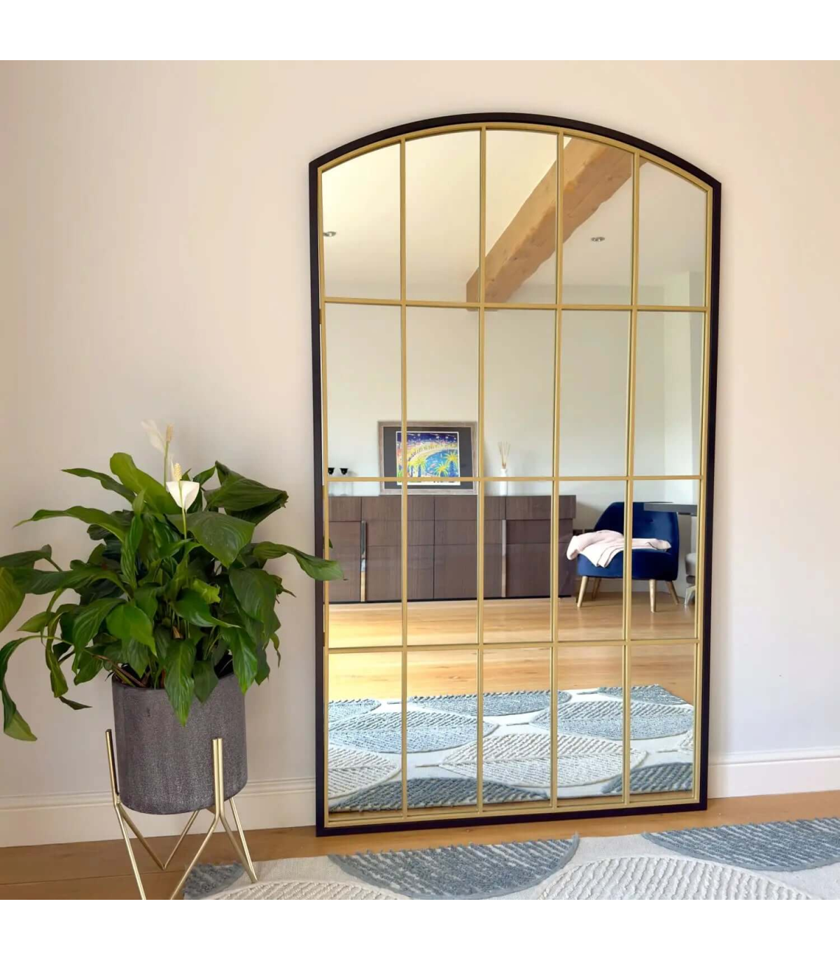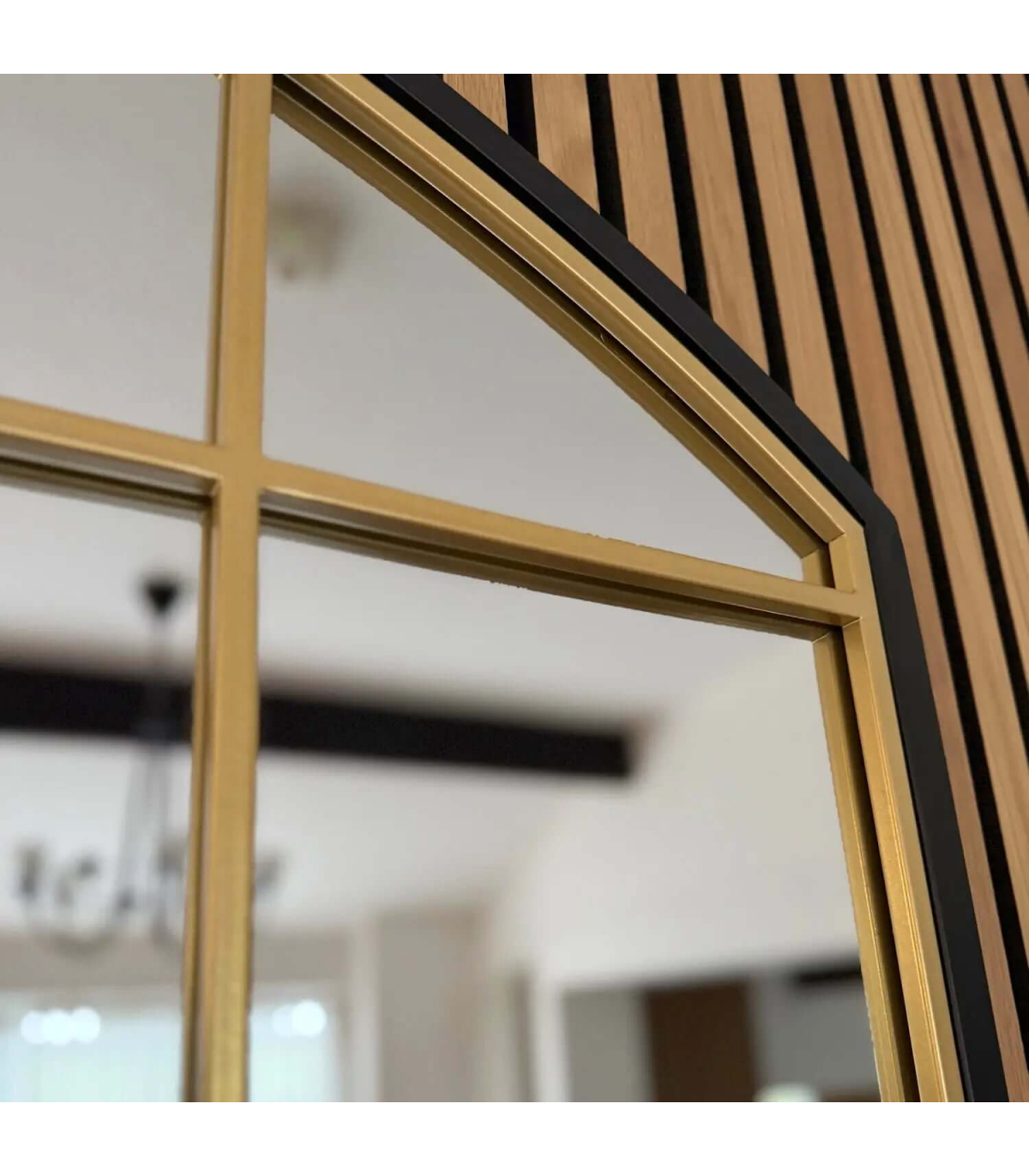 The Tomi mirror range is a fantastic addition to any home decor, featuring a distinctive and timeless curved arched window pane design that provides a phenomenal impact in any space. The chic modern frame, enhanced with refined gold metal accents and reminiscent of a lattice window aesthetic, integrates seamlessly into any decor. Each frame is hand welded to create barely visible joints, resulting in a high-end finish and exceptional craftsmanship.