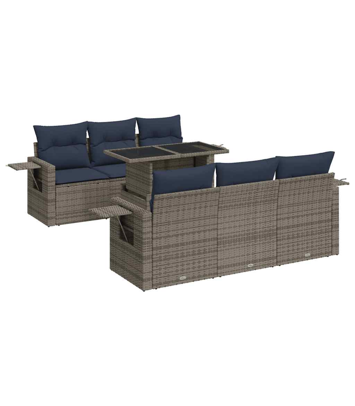 vidaXL 7 Piece Garden Sofa Set with Cushions Black Poly Rattan Acacia