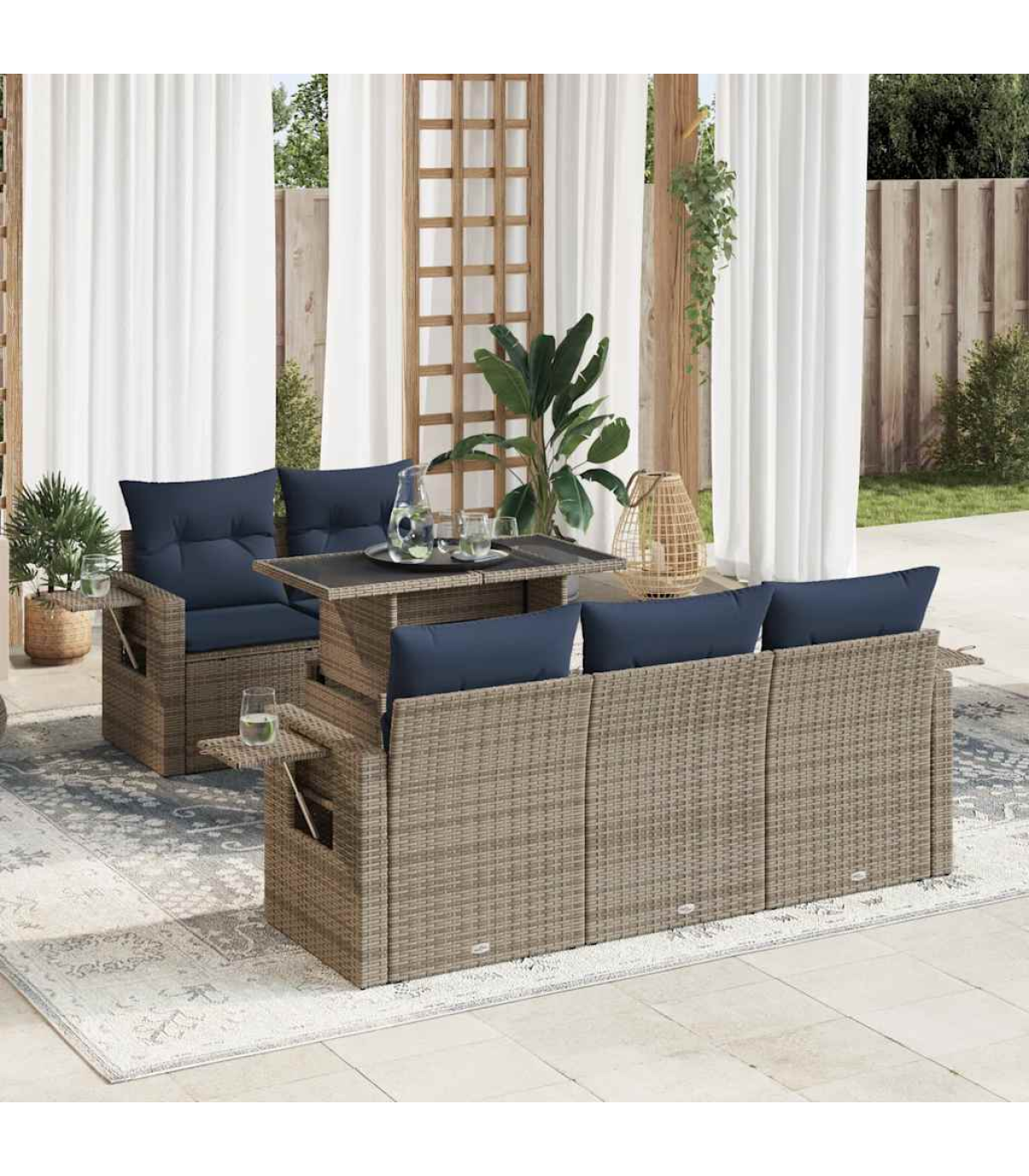 This garden sofa set is the perfect addition to your backyard, terrace, or patio, providing a comfortable and inviting space for chatting with family and friends or simply relaxing and enjoying the outdoors.Durable material: PE rattan, also known as poly rattan, is a strong, low-maintenance synthetic material that looks like natural rattan. It's lightweight, easy to clean, and commonly used for outdoor furniture due to its durability and weather-resistant properties.Storage function with water-resistant bag: Each garden seat features storage space under the seat, complete with a water-resistant bag for storing cushions, toys, and other items. The inner bags have a top cover and can be securely fastened to the seats with hook-and-loop fasteners for added stability.Convenient side table: This outdoor furniture features a foldable side table with a gas spring, providing a convenient spot to keep your essentials within easy reach.Removable and washable cover: These seat cushions feature removable covers for easy washing and maintenance.Modular design: This outdoor furniture set has a modular design, making it completely flexible and easy to move around, so you can create a customised outdoor furniture arrangement.Good to know:To make sure your outdoor furniture stays beautiful, we recommend protecting it with a waterproof cover.