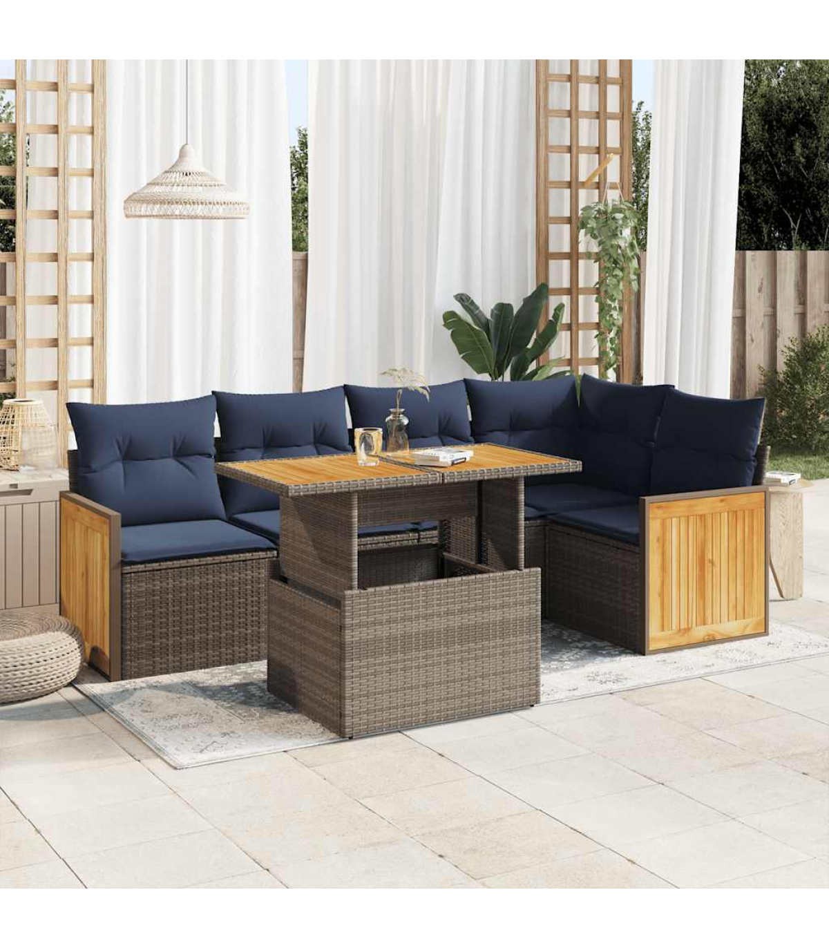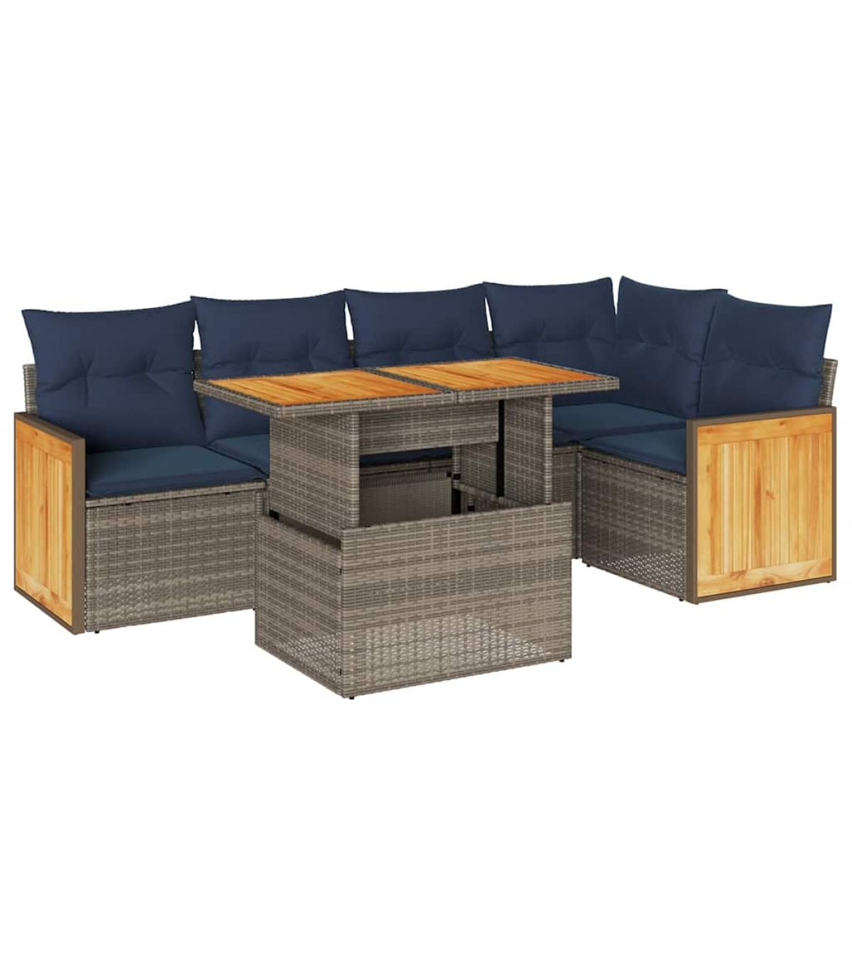vidaXL 6 Piece Garden Sofa Set with Cushions Grey Poly Rattan Acacia