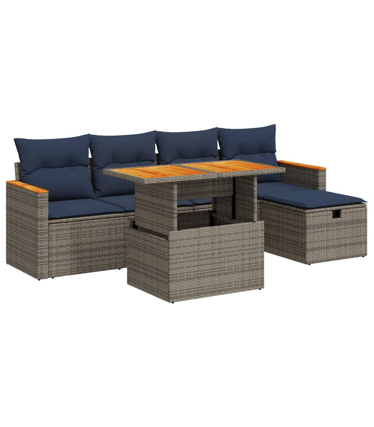 vidaXL 6 Piece Garden Sofa Set with Cushions Grey Poly Rattan Acacia