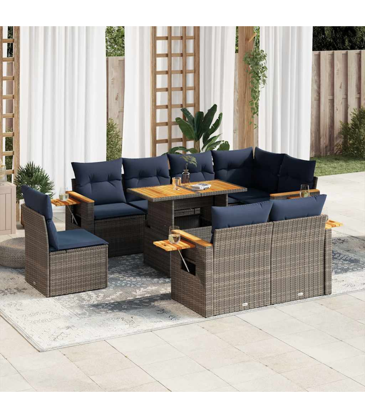 This garden sofa set is the perfect addition to your backyard, terrace, or patio, providing a comfortable and inviting space for chatting with family and friends or simply relaxing and enjoying the outdoors.Durable material: PE rattan, also known as poly rattan, is a strong, low-maintenance synthetic material that looks like natural rattan. It's lightweight, easy to clean, and commonly used for outdoor furniture due to its durability and weather-resistant properties.Storage function with water-resistant bag: Each garden seat features storage space under the seat, complete with a water-resistant bag for storing cushions, toys, and other items. The inner bags have a top cover and can be securely fastened to the seats with hook-and-loop fasteners for added stability.Removable and washable cover: These seat cushions feature removable covers for easy washing and maintenance.Modular design: This outdoor furniture set has a modular design, making it completely flexible and easy to move around, so you can create a customised outdoor furniture arrangement.Good to know:To make sure your outdoor furniture stays beautiful, we recommend protecting it with a waterproof cover.