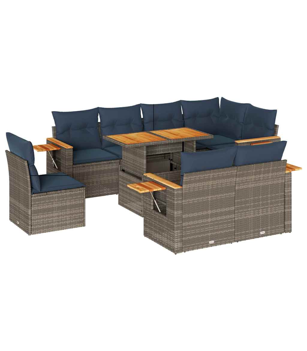 vidaXL 9 Piece Garden Sofa Set with Cushions Grey Poly Rattan Acacia