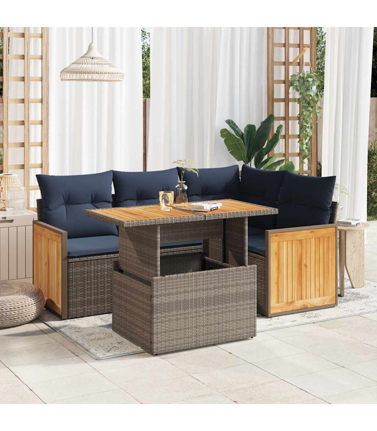 This garden sofa set is the perfect addition to your backyard, terrace, or patio, providing a comfortable and inviting space for chatting with family and friends or simply relaxing and enjoying the outdoors.Durable material: PE rattan, also known as poly rattan, is a strong, low-maintenance synthetic material that looks like natural rattan. It's lightweight, easy to clean, and commonly used for outdoor furniture due to its durability and weather-resistant properties.Storage function with water-resistant bag: Each garden seat features storage space under the seat, complete with a water-resistant bag for storing cushions, toys, and other items. The inner bags have a top cover and can be securely fastened to the seats with hook-and-loop fasteners for added stability.Removable and washable cover: These seat cushions feature removable covers for easy washing and maintenance.Modular design: This outdoor furniture set has a modular design, making it completely flexible and easy to move around, so you can create a customised outdoor furniture arrangement.Good to know:To make sure your outdoor furniture stays beautiful, we recommend protecting it with a waterproof cover.