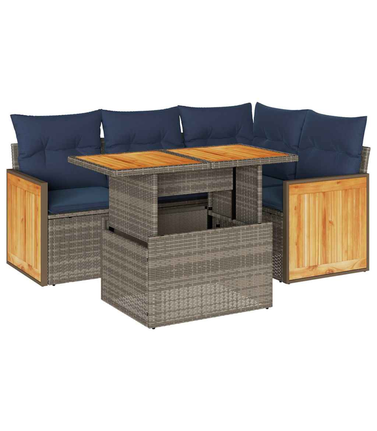 vidaXL 5 Piece Garden Sofa Set with Cushions Grey Poly Rattan Acacia