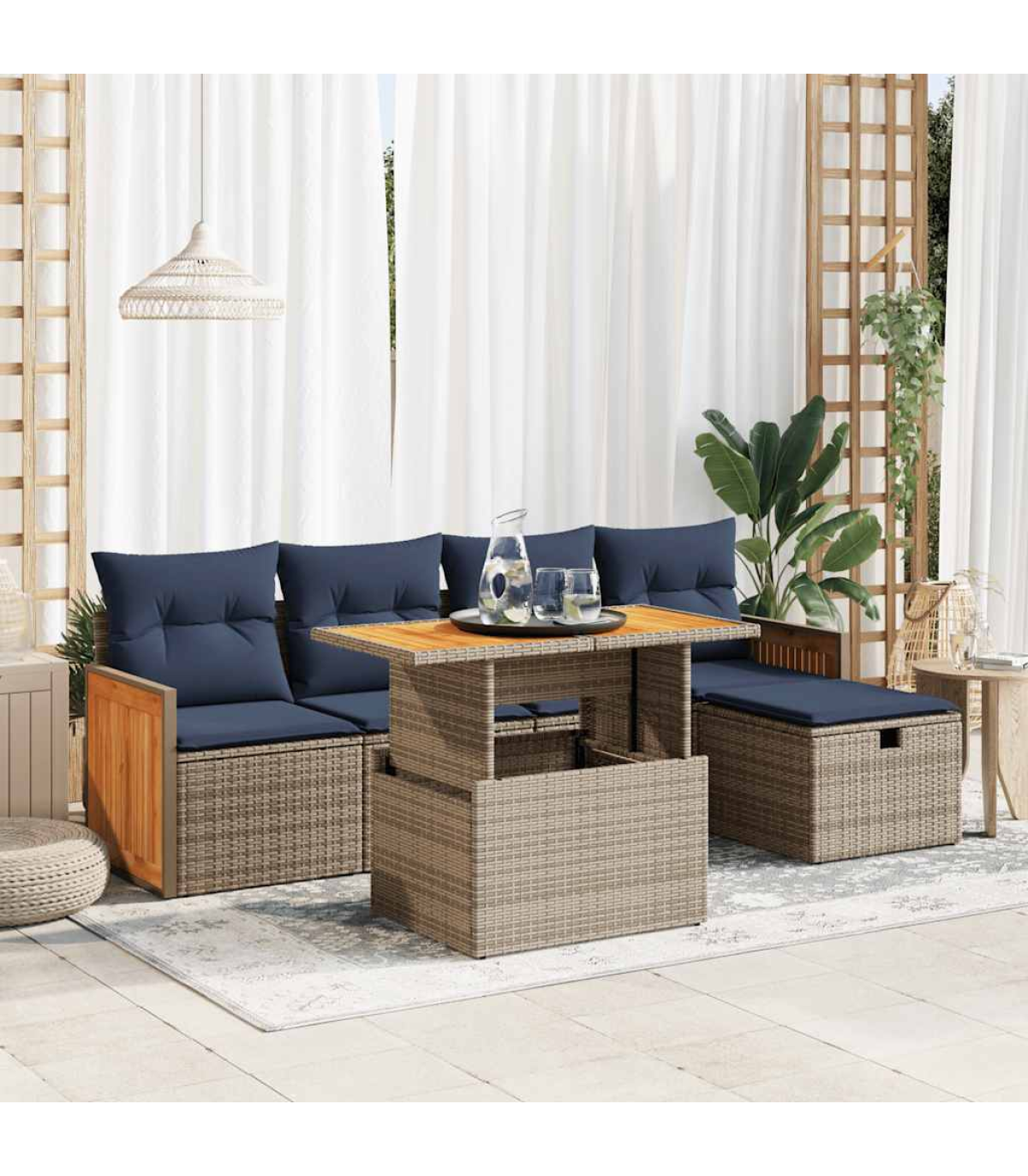 vidaXL 6 Piece Garden Sofa Set with Cushions Grey Poly Rattan Acacia