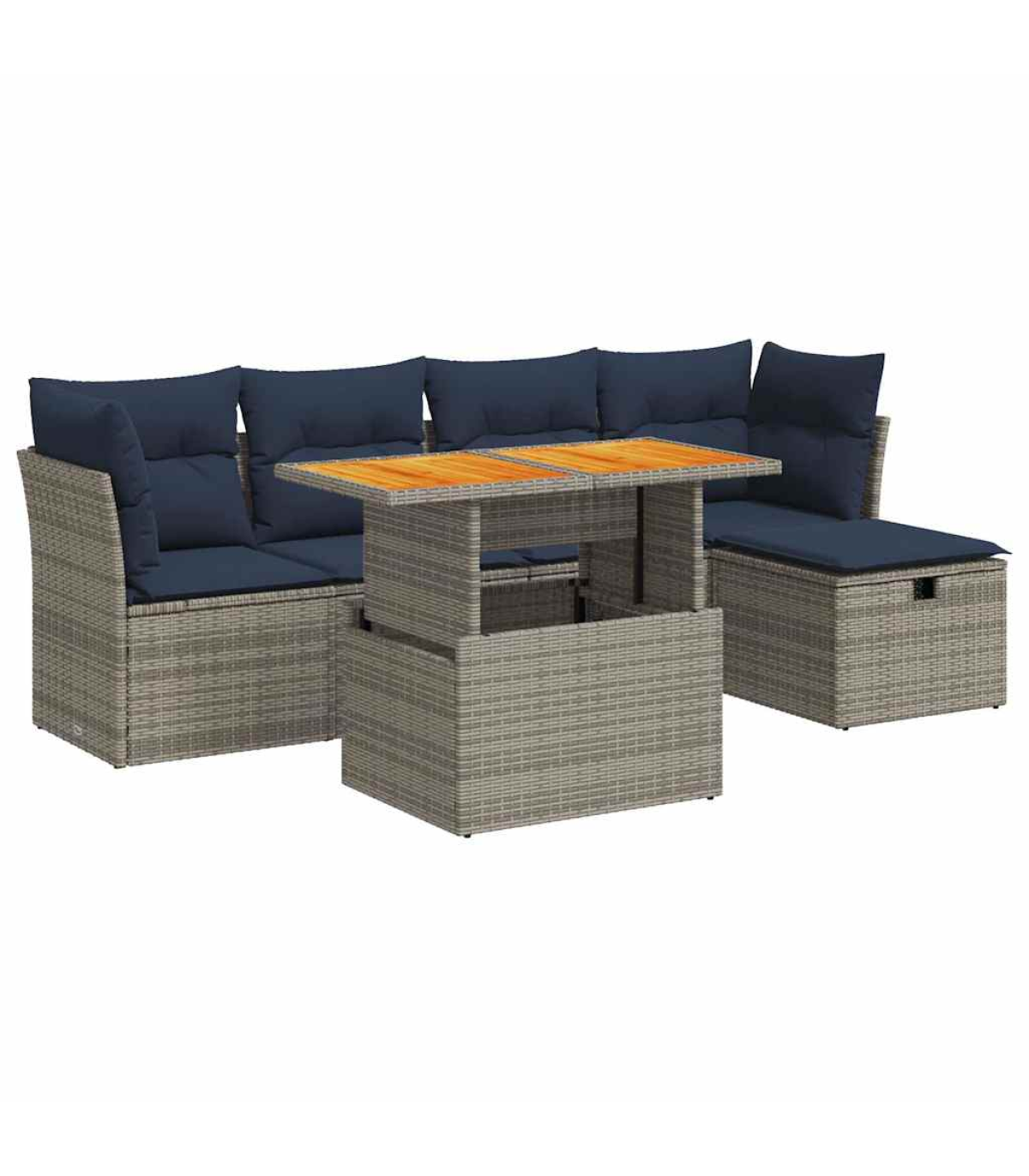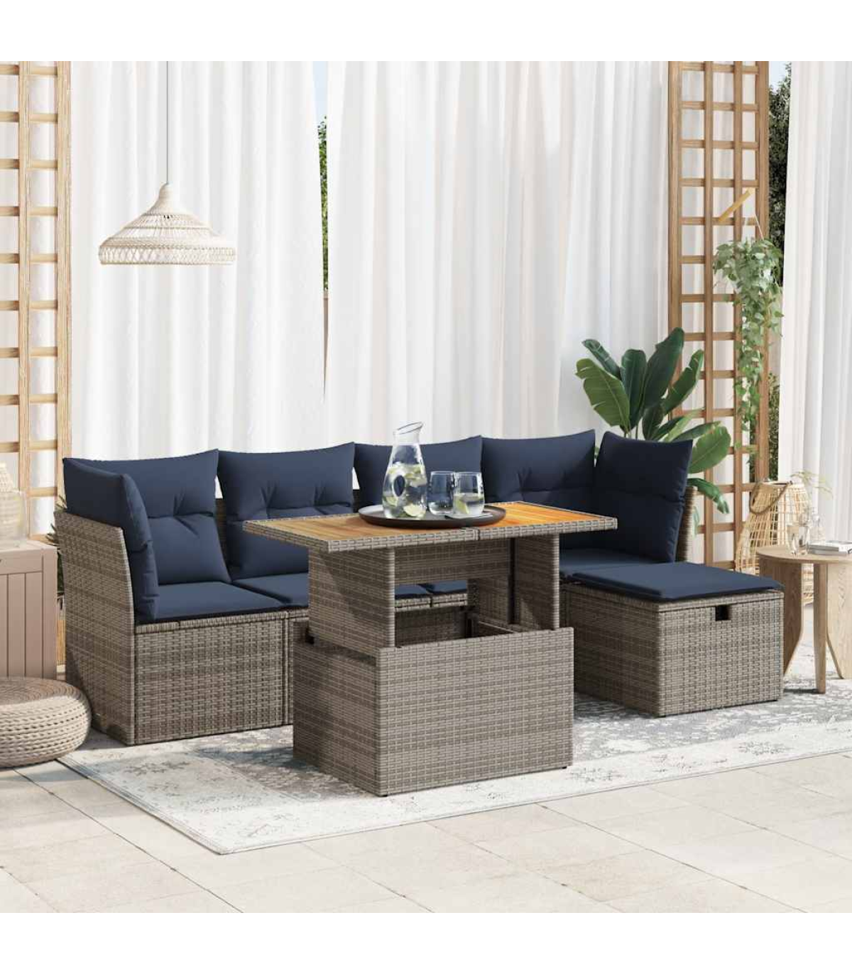 vidaXL 6 Piece Garden Sofa Set with Cushions Grey Poly Rattan Acacia
