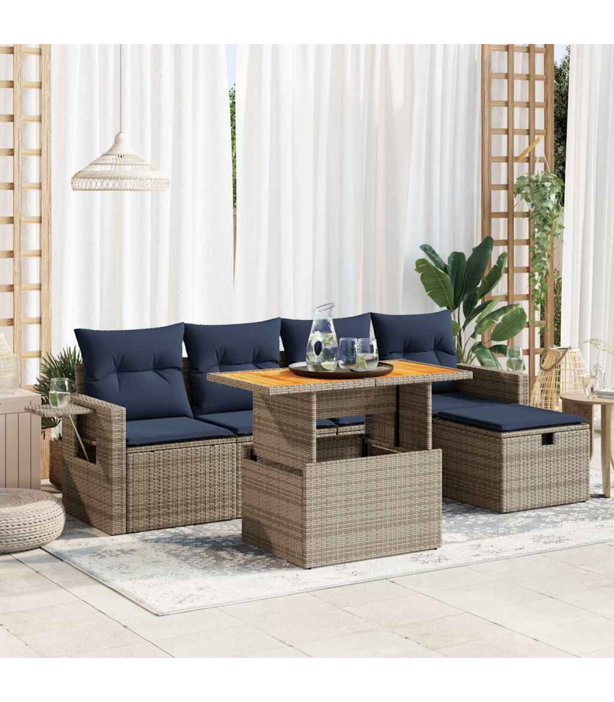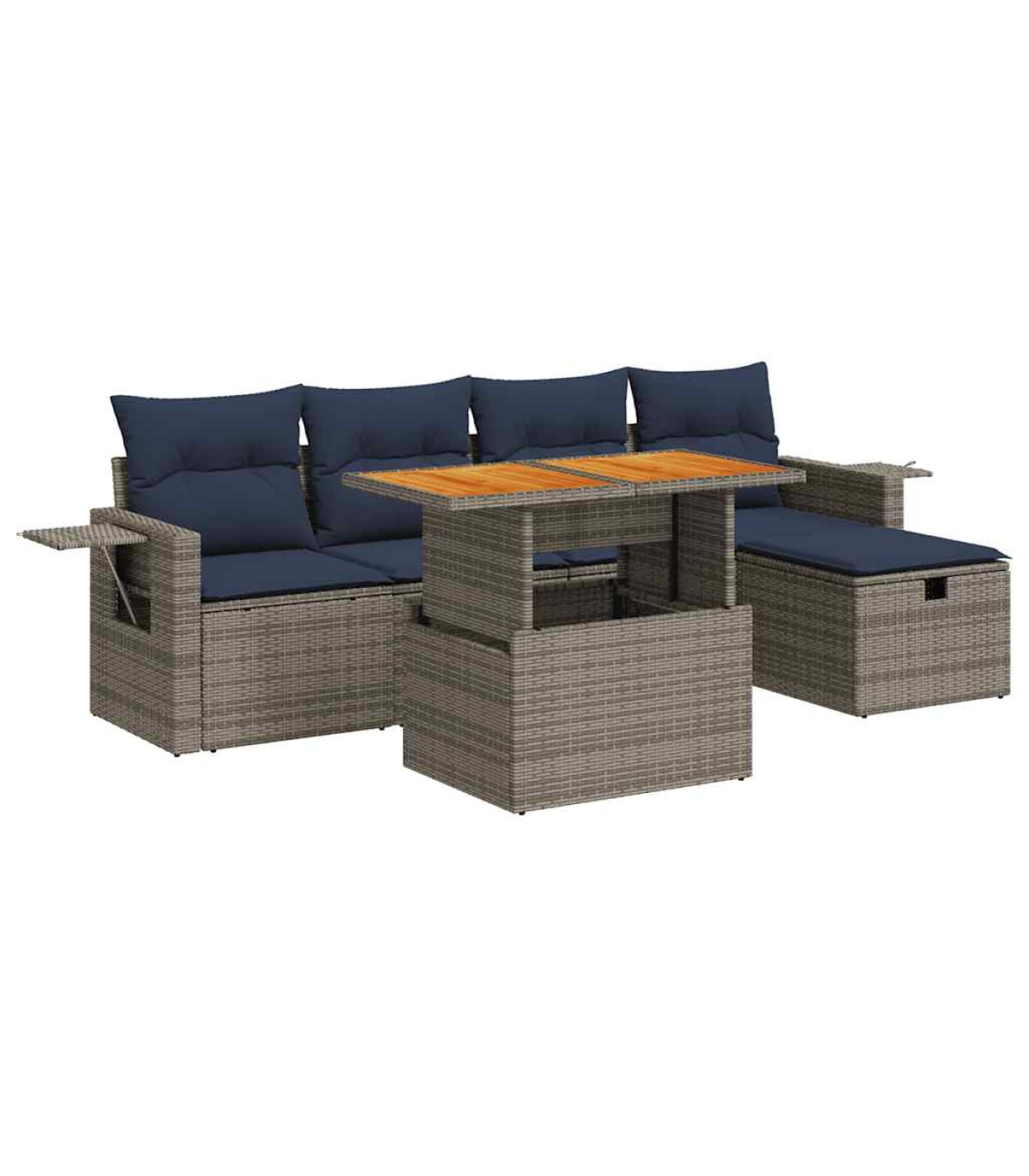 vidaXL 6 Piece Garden Sofa Set with Cushions Grey Poly Rattan Acacia