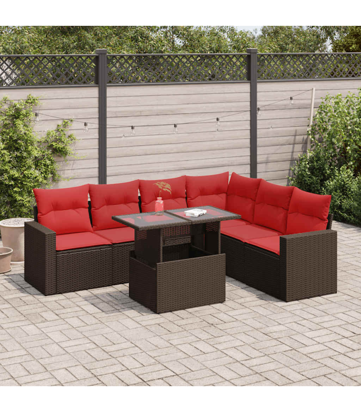vidaXL 7 Piece Garden Sofa Set with Cushions Grey Poly Rattan Acacia