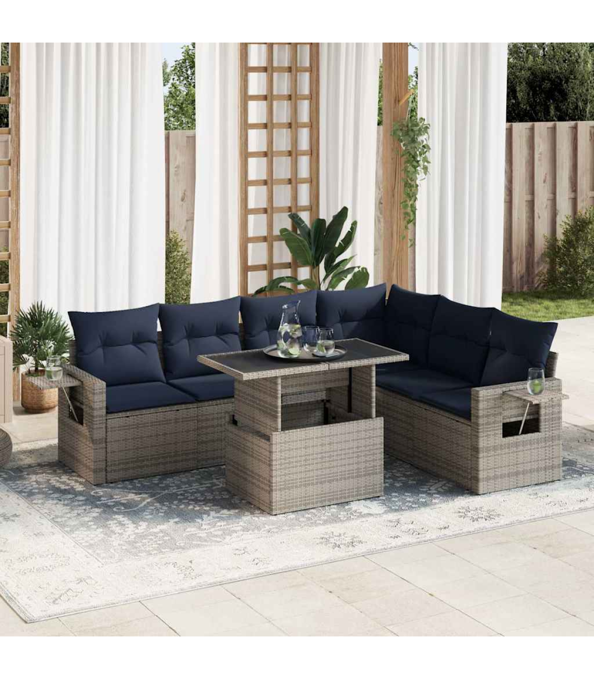 This garden sofa set is the perfect addition to your backyard, terrace, or patio, providing a comfortable and inviting space for chatting with family and friends or simply relaxing and enjoying the outdoors.Durable material: PE rattan, also known as poly rattan, is a strong, low-maintenance synthetic material that looks like natural rattan. It's lightweight, easy to clean, and commonly used for outdoor furniture due to its durability and weather-resistant properties.Storage function with water-resistant bag: Each garden seat features storage space under the seat, complete with a water-resistant bag for storing cushions, toys, and other items. The inner bags have a top cover and can be securely fastened to the seats with hook-and-loop fasteners for added stability.Convenient side table: This outdoor furniture features a foldable side table with a gas spring, providing a convenient spot to keep your essentials within easy reach.Removable and washable cover: These seat cushions feature removable covers for easy washing and maintenance.Modular design: This outdoor furniture set has a modular design, making it completely flexible and easy to move around, so you can create a customised outdoor furniture arrangement.Good to know:To make sure your outdoor furniture stays beautiful, we recommend protecting it with a waterproof cover.