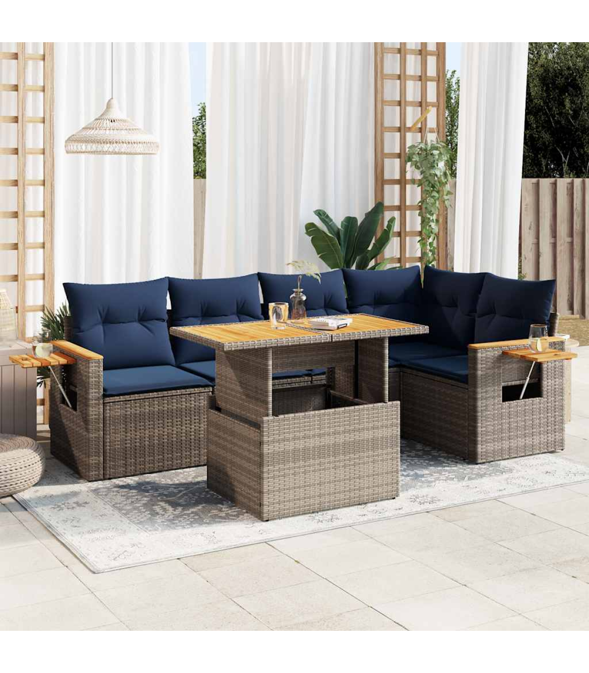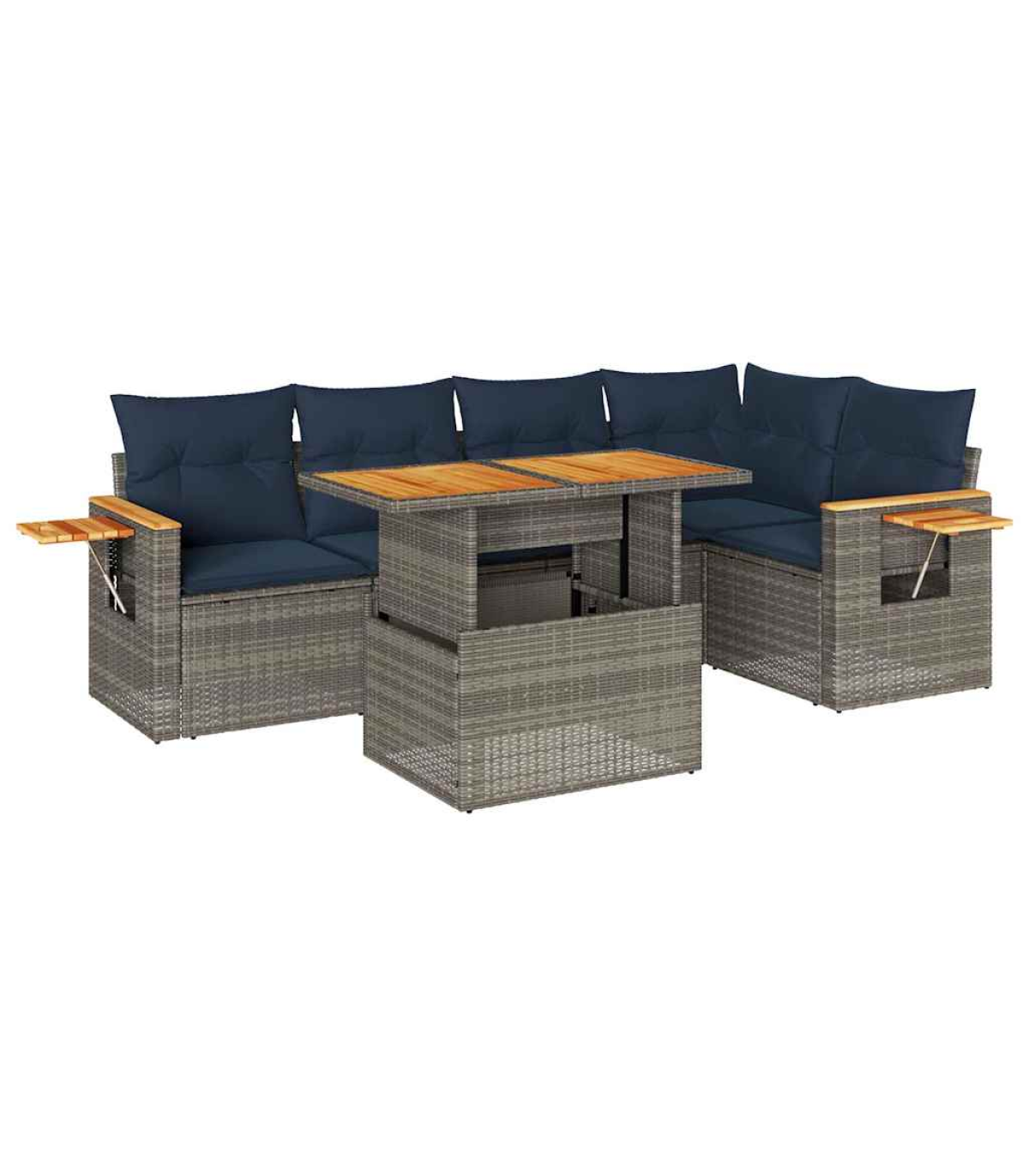 vidaXL 6 Piece Garden Sofa Set with Cushions Grey Poly Rattan Acacia