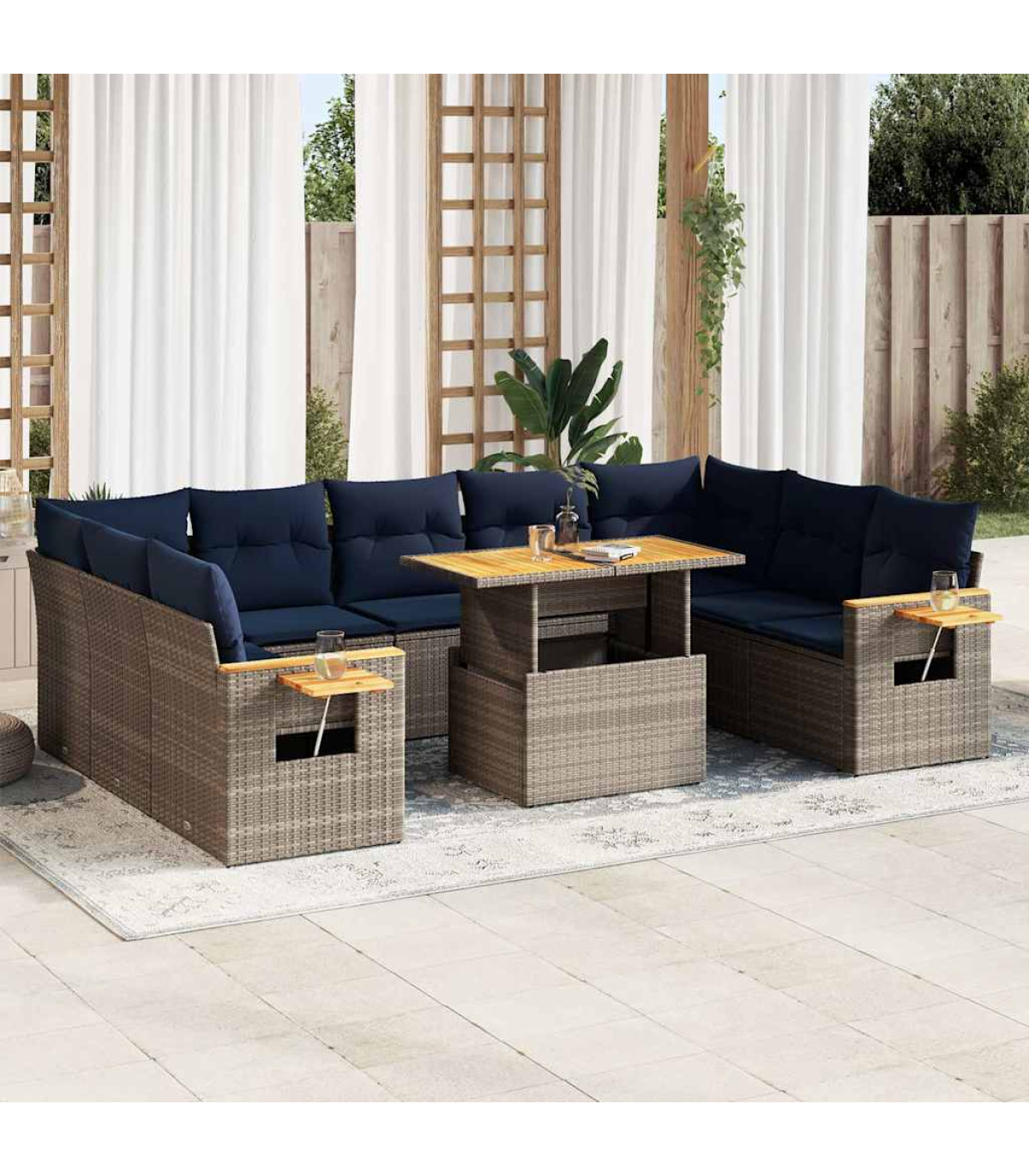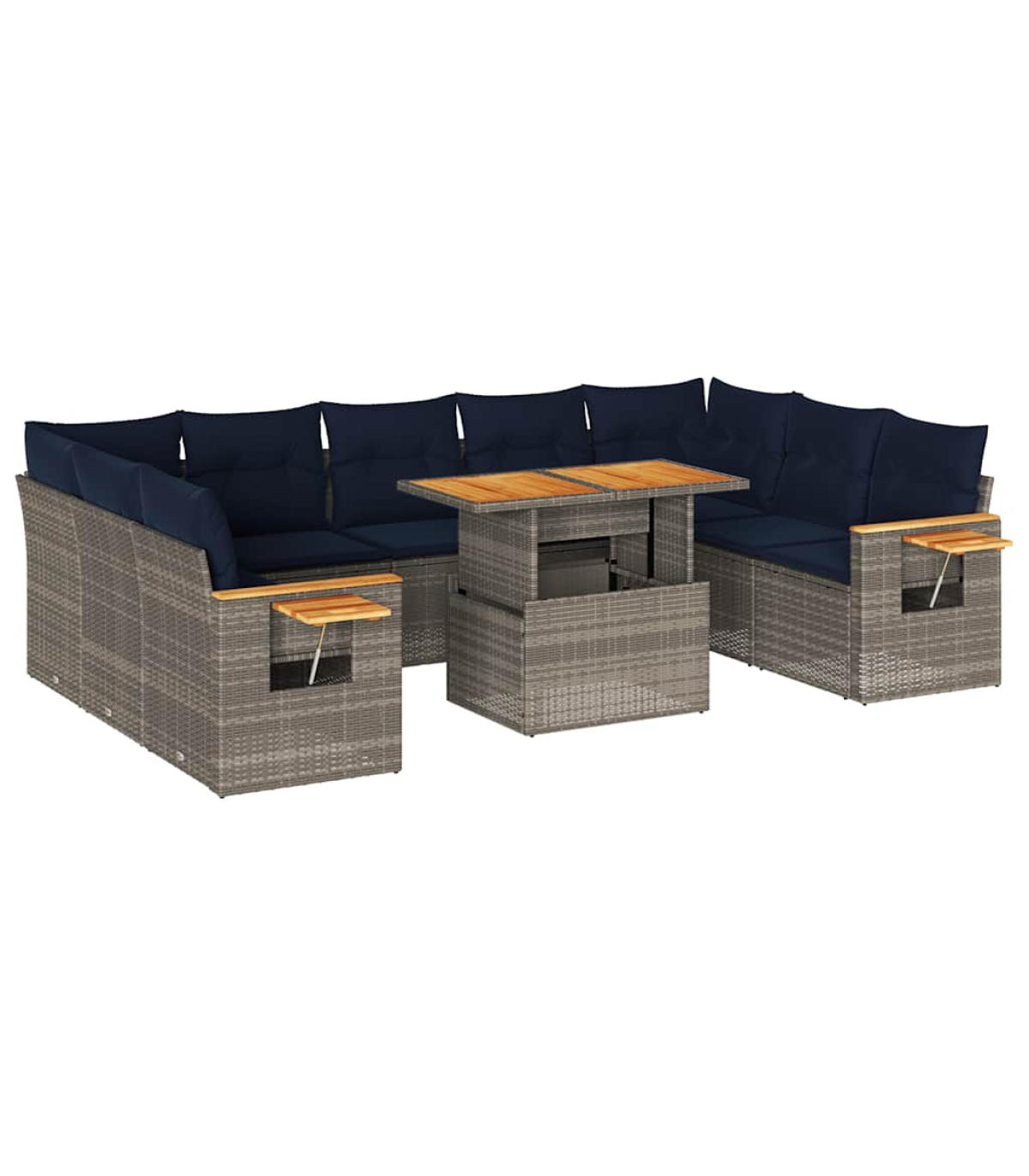 vidaXL 10 Piece Garden Sofa Set with Cushions Grey Poly Rattan Acacia