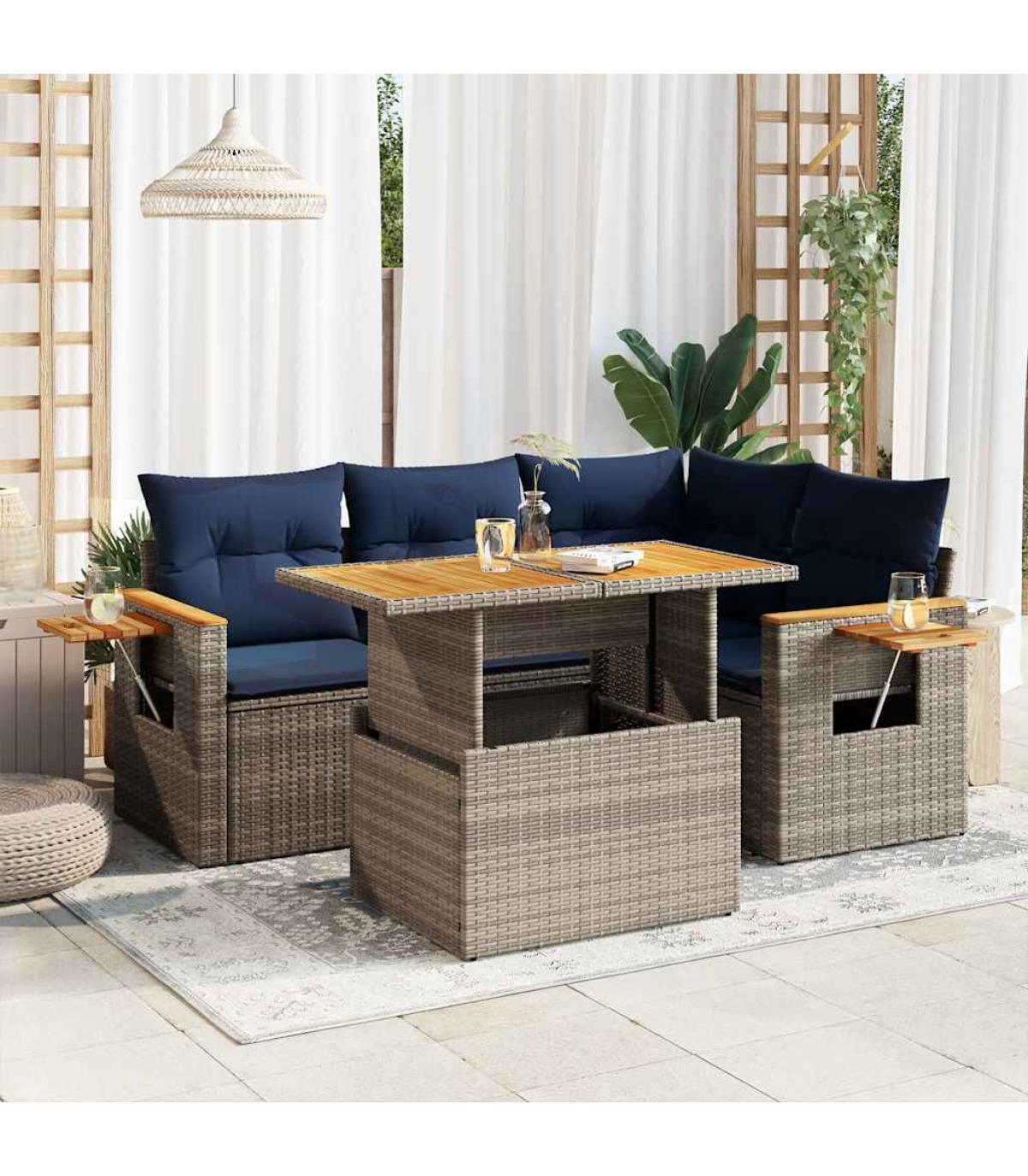 This garden sofa set is the perfect addition to your backyard, terrace, or patio, providing a comfortable and inviting space for chatting with family and friends or simply relaxing and enjoying the outdoors.Durable material: PE rattan, also known as poly rattan, is a strong, low-maintenance synthetic material that looks like natural rattan. It's lightweight, easy to clean, and commonly used for outdoor furniture due to its durability and weather-resistant properties.Storage function with water-resistant bag: Each garden seat features storage space under the seat, complete with a water-resistant bag for storing cushions, toys, and other items. The inner bags have a top cover and can be securely fastened to the seats with hook-and-loop fasteners for added stability.Removable and washable cover: These seat cushions feature removable covers for easy washing and maintenance.Modular design: This outdoor furniture set has a modular design, making it completely flexible and easy to move around, so you can create a customised outdoor furniture arrangement.Good to know:To make sure your outdoor furniture stays beautiful, we recommend protecting it with a waterproof cover.