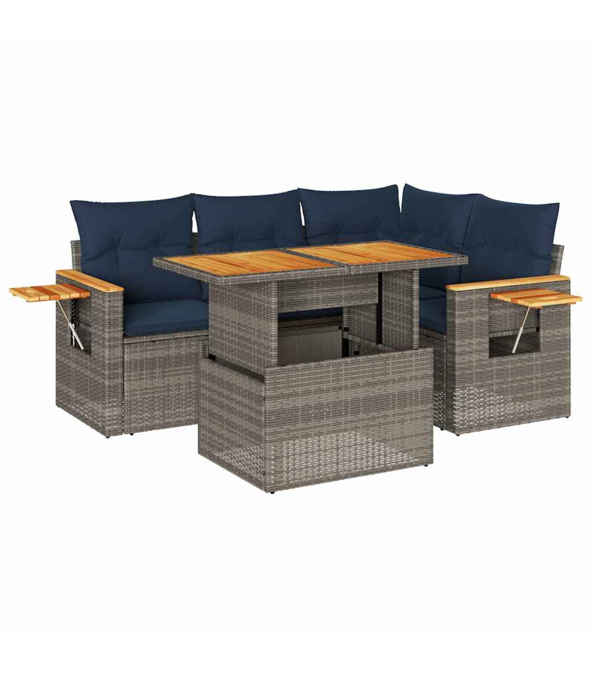 vidaXL 5 Piece Garden Sofa Set with Cushions Grey Poly Rattan Acacia