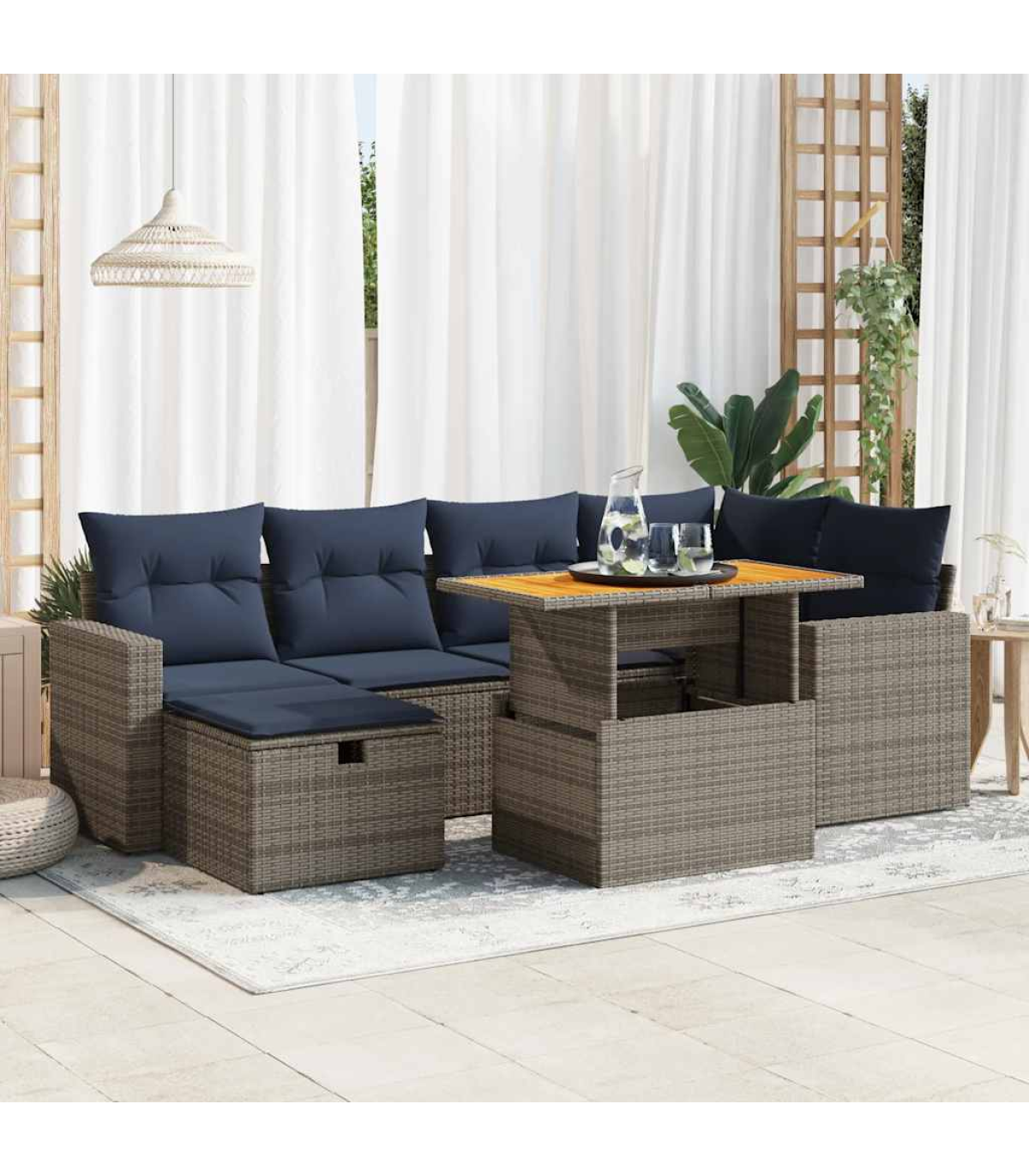 This garden sofa set is the perfect addition to your backyard, terrace, or patio, providing a comfortable and inviting space for chatting with family and friends or simply relaxing and enjoying the outdoors.Durable material: PE rattan, also known as poly rattan, is a strong, low-maintenance synthetic material that looks like natural rattan. It's lightweight, easy to clean, and commonly used for outdoor furniture due to its durability and weather-resistant properties.Storage function with water-resistant bag: Each garden seat features storage space under the seat, complete with a water-resistant bag for storing cushions, toys, and other items. The inner bags have a top cover and can be securely fastened to the seats with hook-and-loop fasteners for added stability.Removable and washable cover: These seat cushions feature removable covers for easy washing and maintenance.Modular design: This outdoor furniture set has a modular design, making it completely flexible and easy to move around, so you can create a customised outdoor furniture arrangement.Good to know:To make sure your outdoor furniture stays beautiful, we recommend protecting it with a waterproof cover.