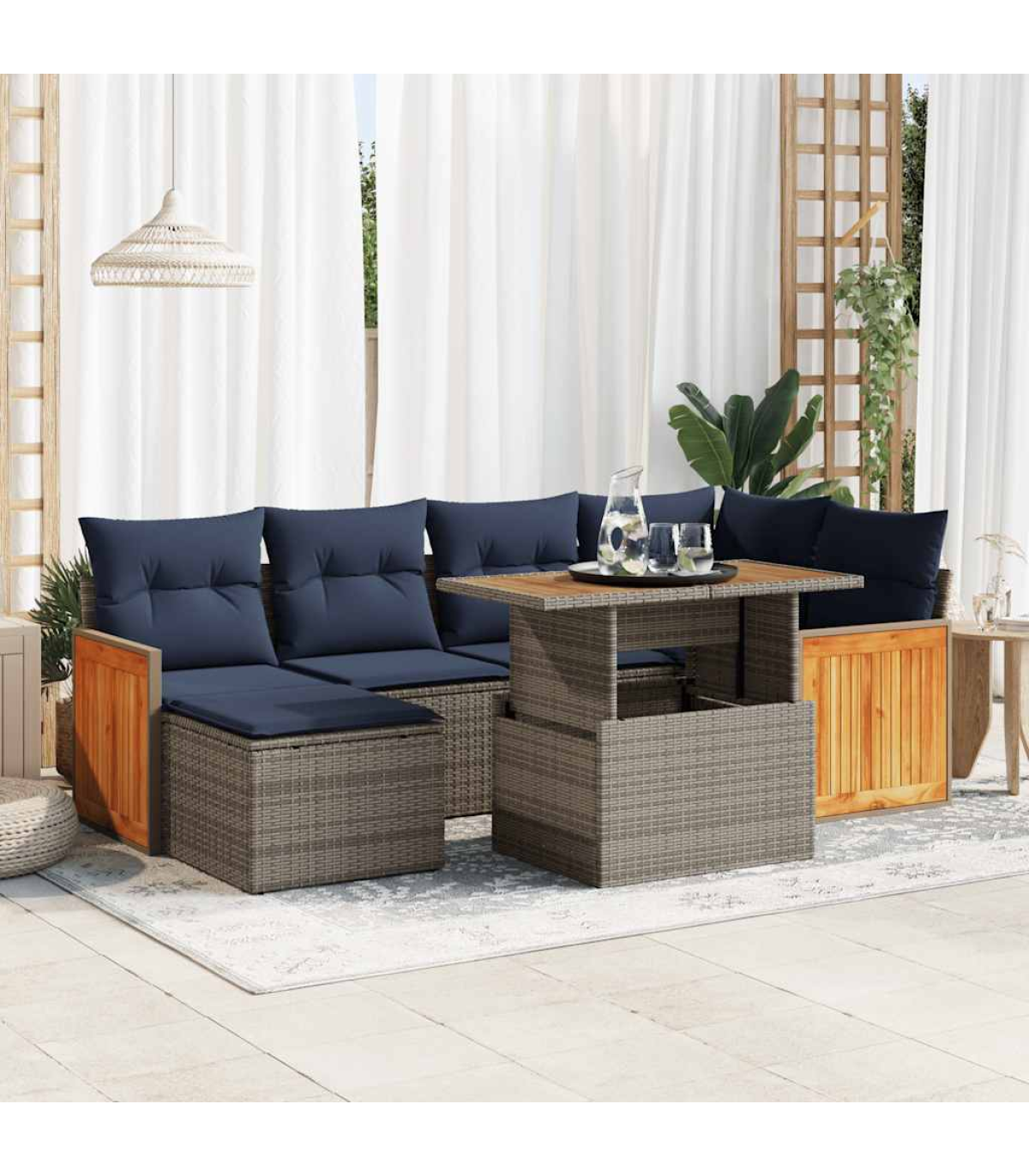 vidaXL 7 Piece Garden Sofa Set with Cushions Black Poly Rattan Acacia