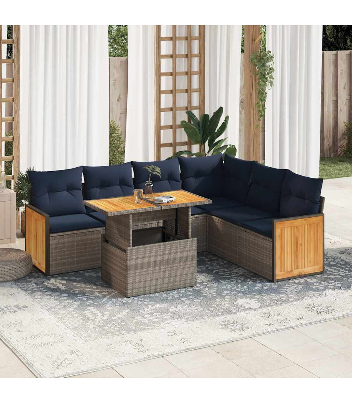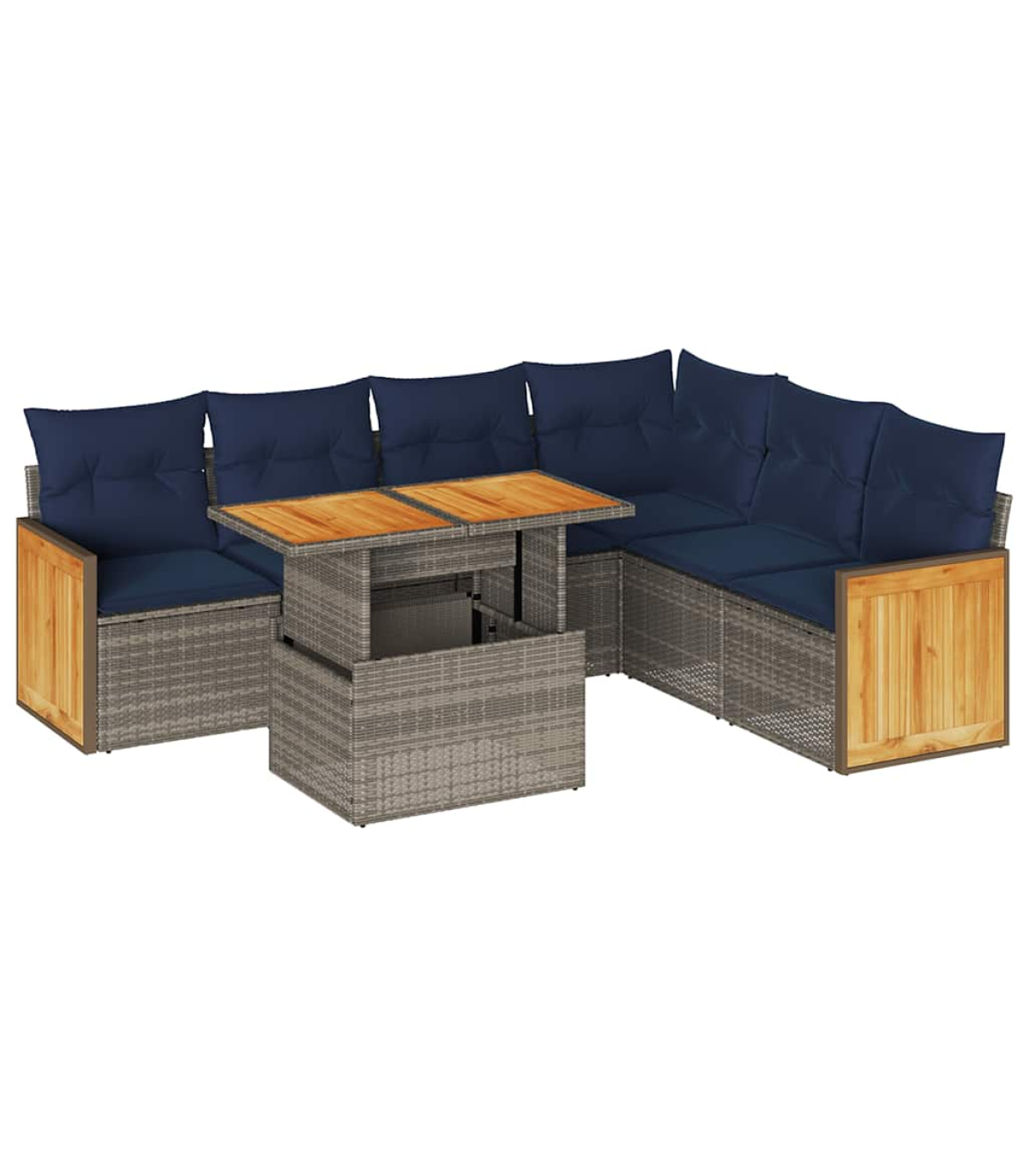 vidaXL 7 Piece Garden Sofa Set with Cushions Grey Poly Rattan Acacia
