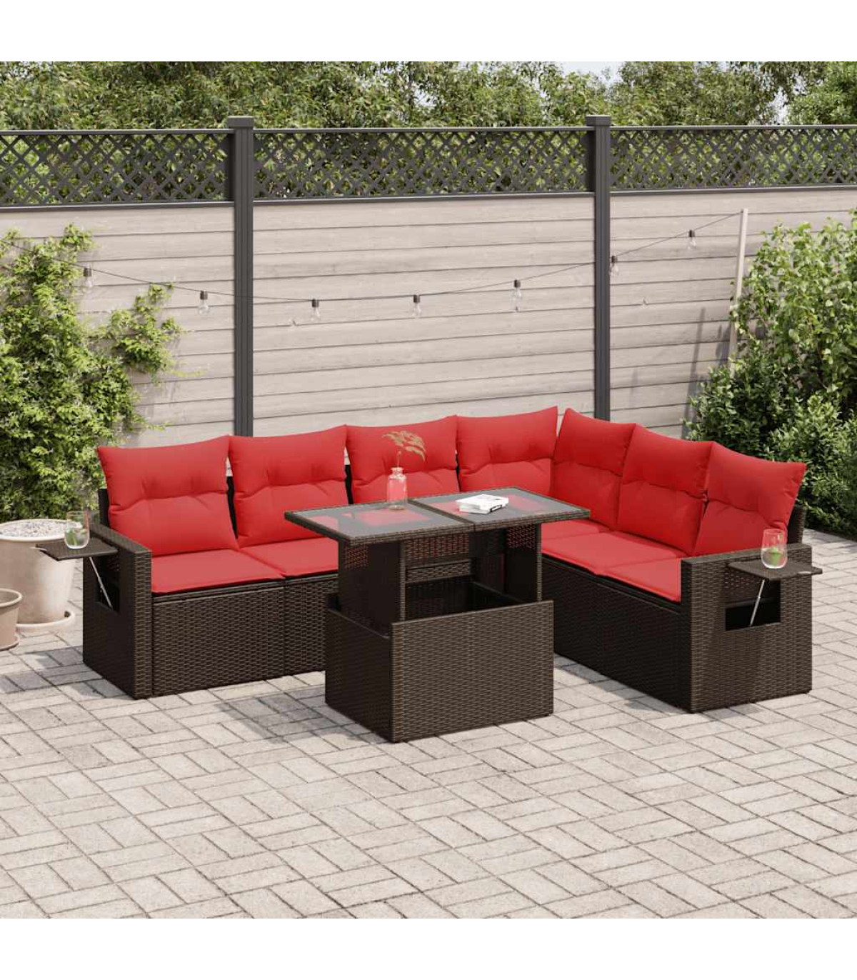 vidaXL 7 Piece Garden Sofa Set with Cushions Grey Poly Rattan Acacia