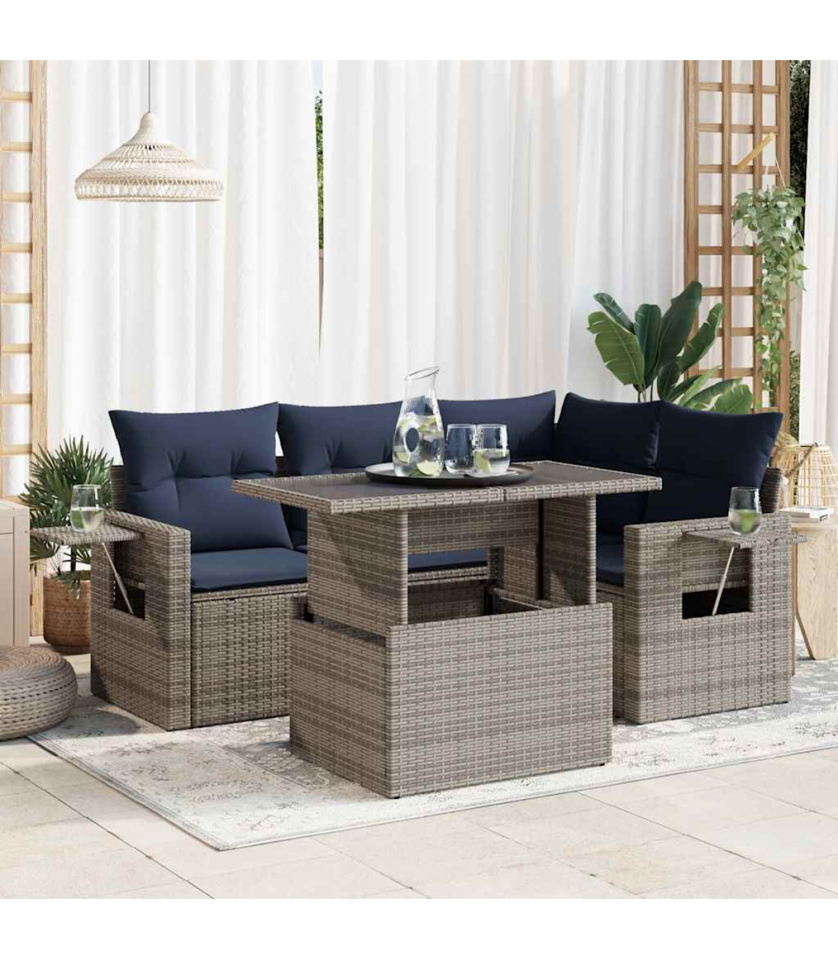 This garden sofa set is the perfect addition to your backyard, terrace, or patio, providing a comfortable and inviting space for chatting with family and friends or simply relaxing and enjoying the outdoors.Durable material: PE rattan, also known as poly rattan, is a strong, low-maintenance synthetic material that looks like natural rattan. It's lightweight, easy to clean, and commonly used for outdoor furniture due to its durability and weather-resistant properties.Storage function with water-resistant bag: Each garden seat features storage space under the seat, complete with a water-resistant bag for storing cushions, toys, and other items. The inner bags have a top cover and can be securely fastened to the seats with hook-and-loop fasteners for added stability.Convenient side table: This outdoor furniture features a foldable side table with a gas spring, providing a convenient spot to keep your essentials within easy reach.Removable and washable cover: These seat cushions feature removable covers for easy washing and maintenance.Modular design: This outdoor furniture set has a modular design, making it completely flexible and easy to move around, so you can create a customised outdoor furniture arrangement.Good to know:To make sure your outdoor furniture stays beautiful, we recommend protecting it with a waterproof cover.