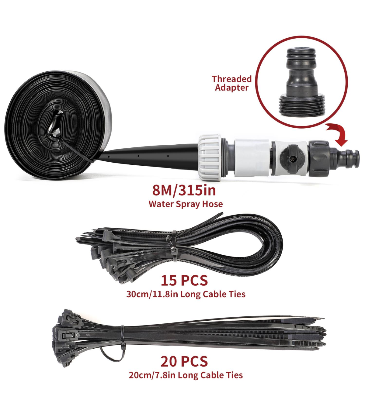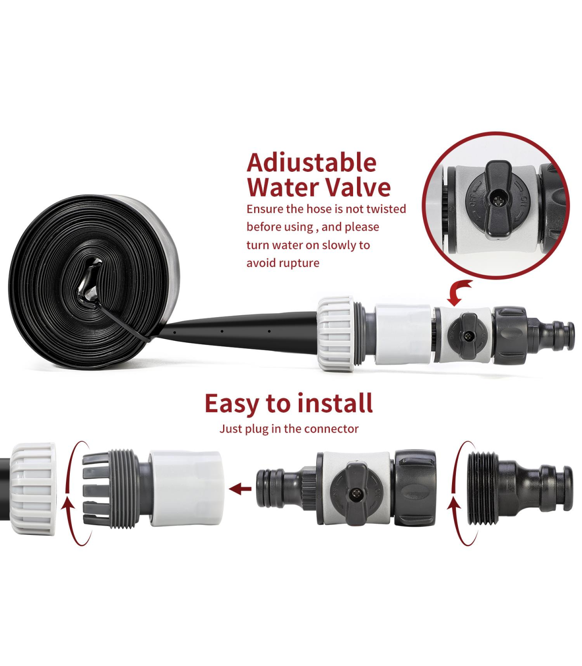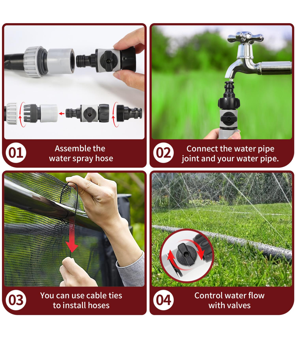 OUTDOOR SUMMER BLAST: Transform the garden into a refreshing spray park for children; lowers surrounding temperature and delivers hours of watery fun on hot days. QUICK & EASY INSTALLATION: Supplied fixing straps secure the hose to fences, trees, pergolas or play frames; simply attach to a standard hose pipe and enjoy instant cooling mist. ADJUSTABLE WATER FLOW: Built-in on-off valve lets you fine-tune pressure or shut the spray off completely without returning to the tap. SAFE & DURABLE BUILD: Thickened PE tubing resists kinks and withstands high pressure, ensuring leak-free performance throughout the summer. MULTIPURPOSE USE: Ideal for outdoor cooling, garden watering, patio misting, pet play or sports sessions—versatile fun for family gatherings and parties.