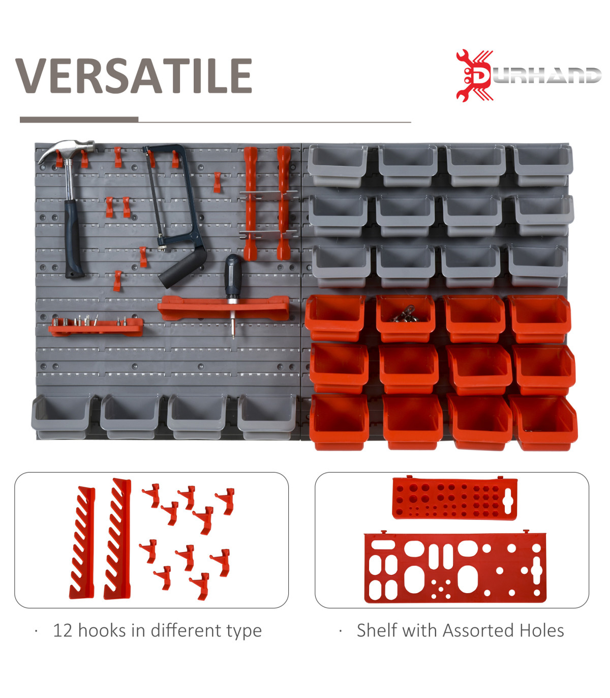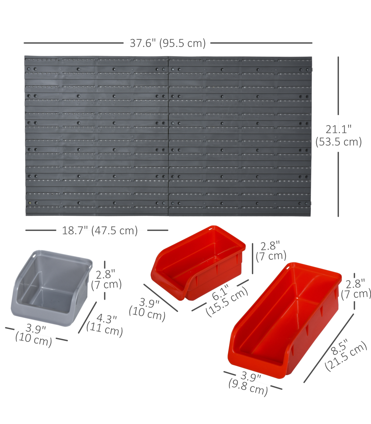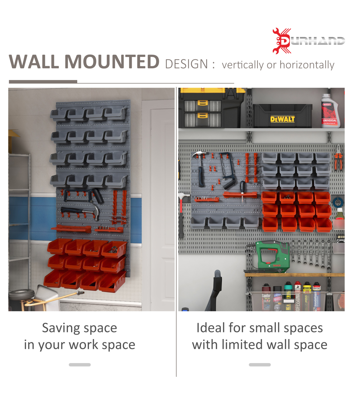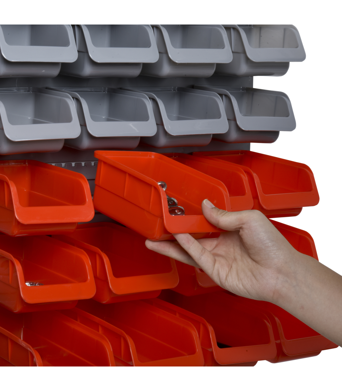 - • Tool Organizer with 2 pegboards and bins in 3 different sizes, ideal for workshops, garages and home workstations