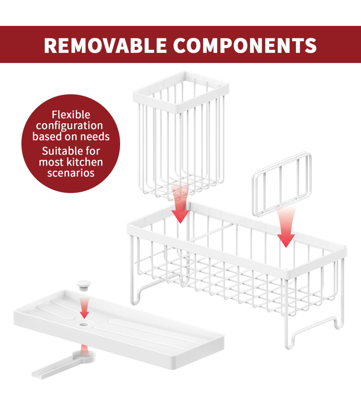 FLEXIBLE CONFIGURATION FOR ANY KITCHEN – Designed with removable inner dividers and compartments, this sink caddy adapts to your needs. Perfect for holding sponges, scrubbers, dish soap, and more. Ideal for small or large sinks and suitable for most kitch