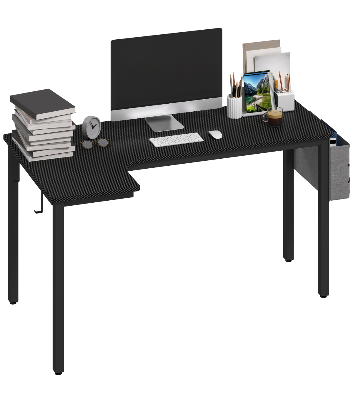 ● Hooks and fabric bag for additional storage options
