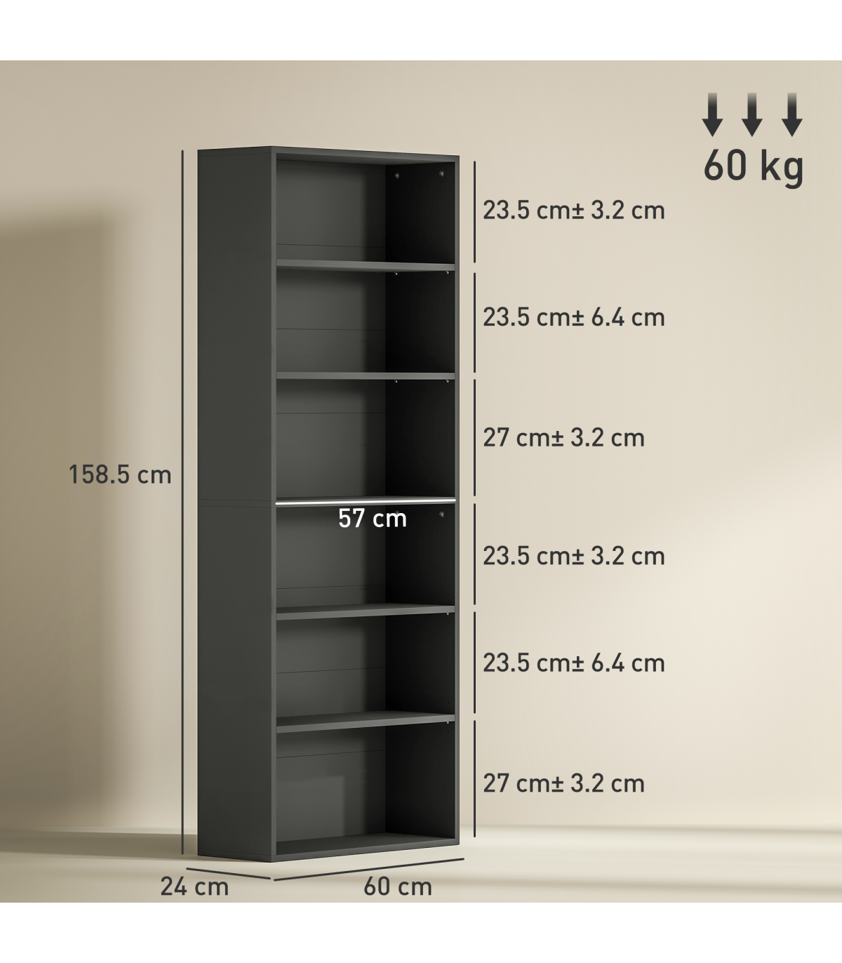 ● Overall Dimension: 60W x 24D x 158.5H cm