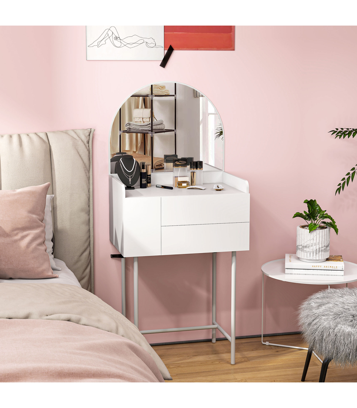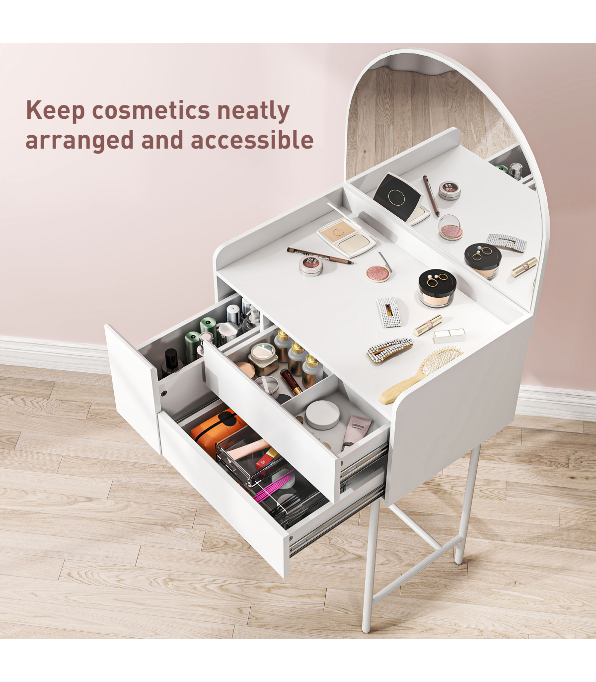 ● Large arched mirror to see yourself clearly when getting ready