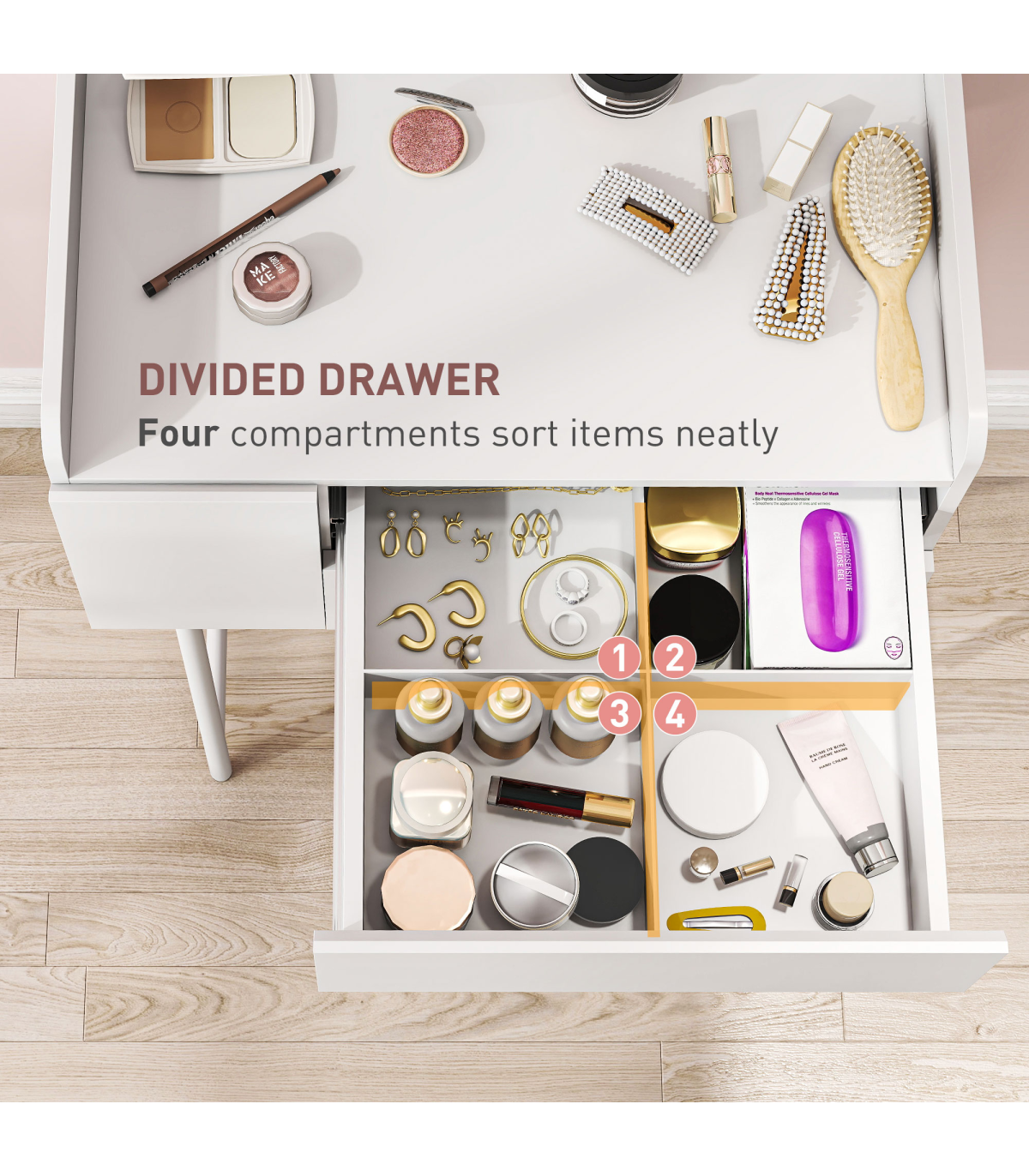 ● Four compartments in a drawer for extra organisation
