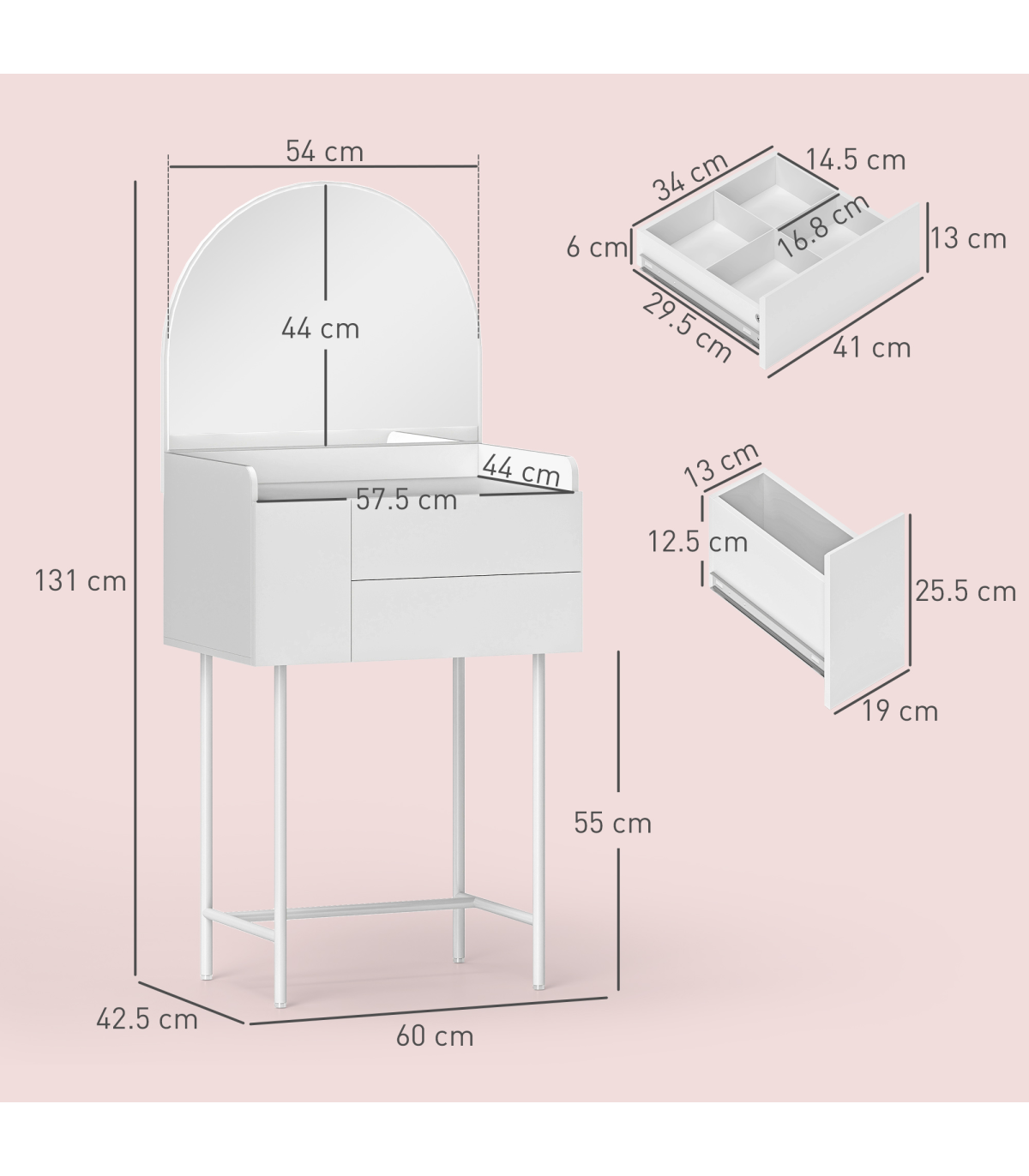 ● Overall Dimension: 60W x 42.5D x 131H cm