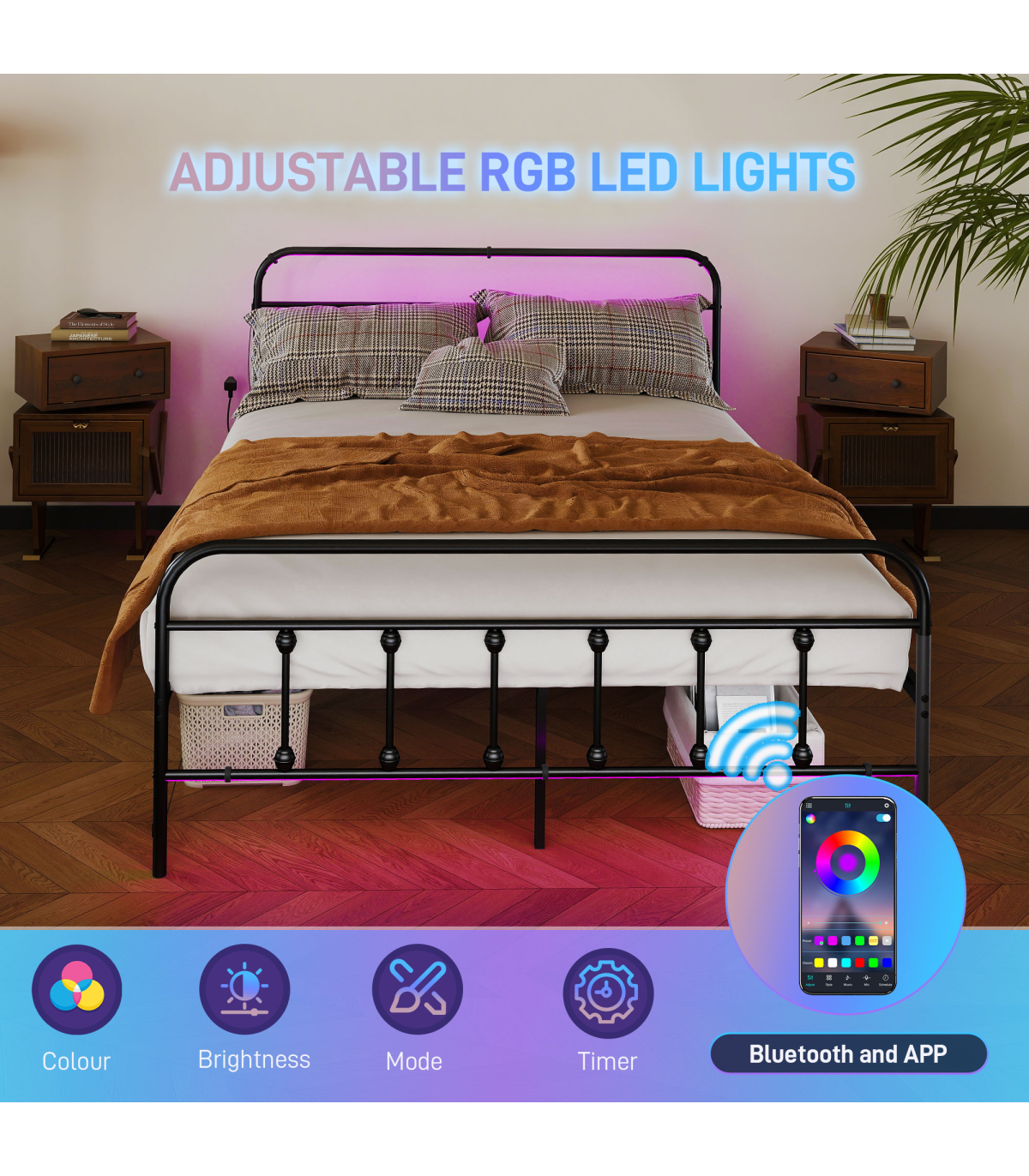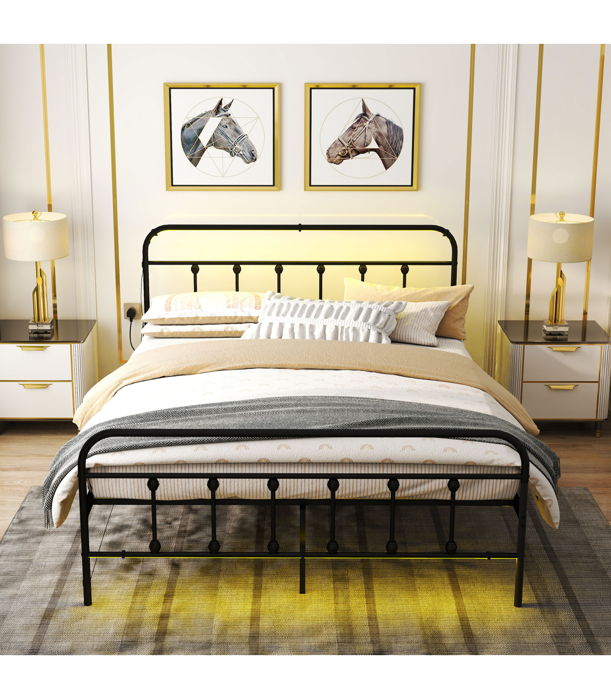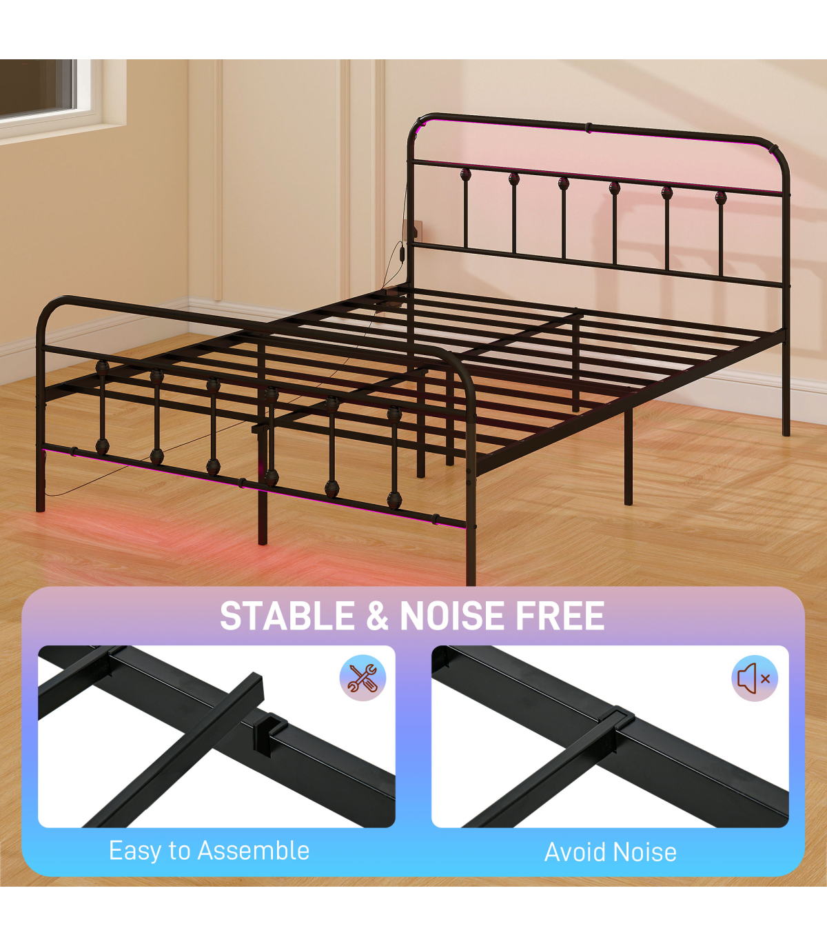● Easy assembly with tools provided, no box spring needed