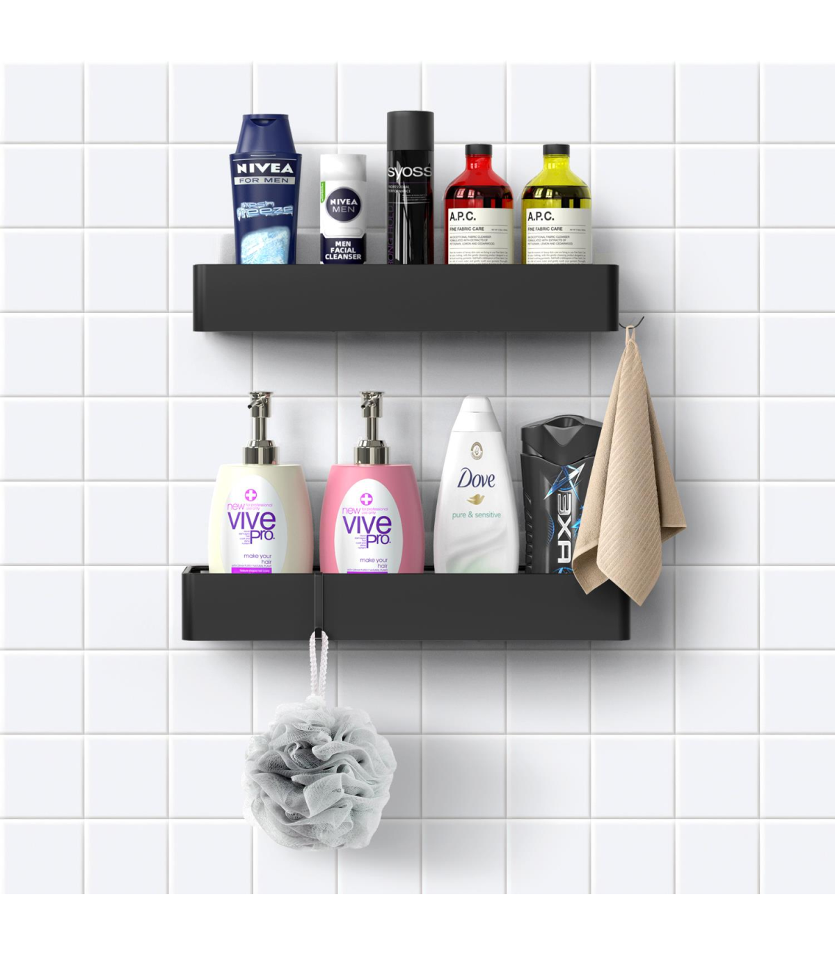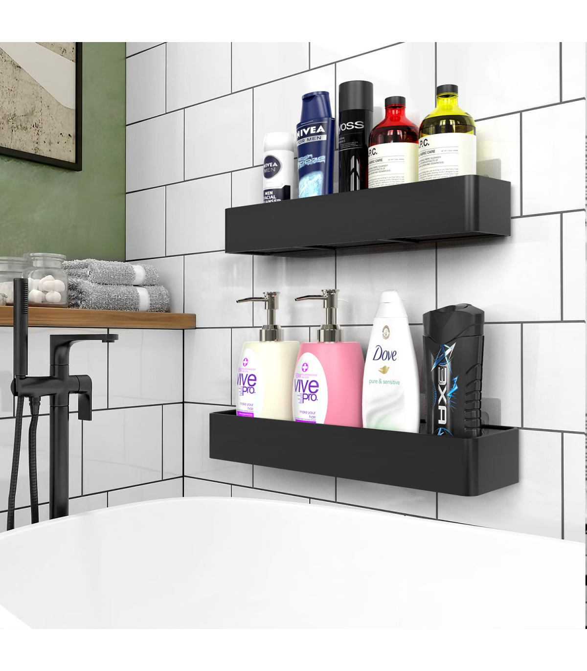 EXTRA LARGE STORAGE CAPACITY – Each Vinsani shower shelf measures L 10.9cm x W 40cm x H 6cm, providing ample room for all your shower essentials like shampoo, conditioner, body wash, soap, facial cleanser, and shaving accessories. The high guard rails keep items securely in place, preventing accidental drops.