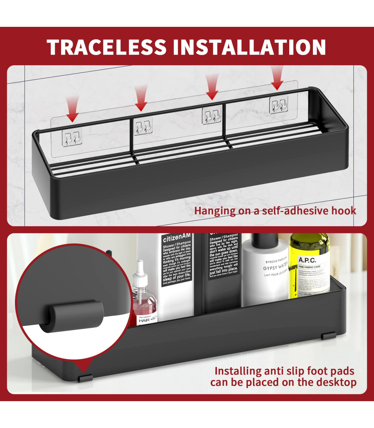 HEAVY DUTY ADHESIVE INSTALLATION – Equipped with 4 ultra-strong adhesive tapes, each rustproof bathroom caddy holds up to 20 lbs of weight, keeping your bath items stable and organised. No tools, screws or drilling required, making it ideal for renters or anyone wanting damage-free installation.