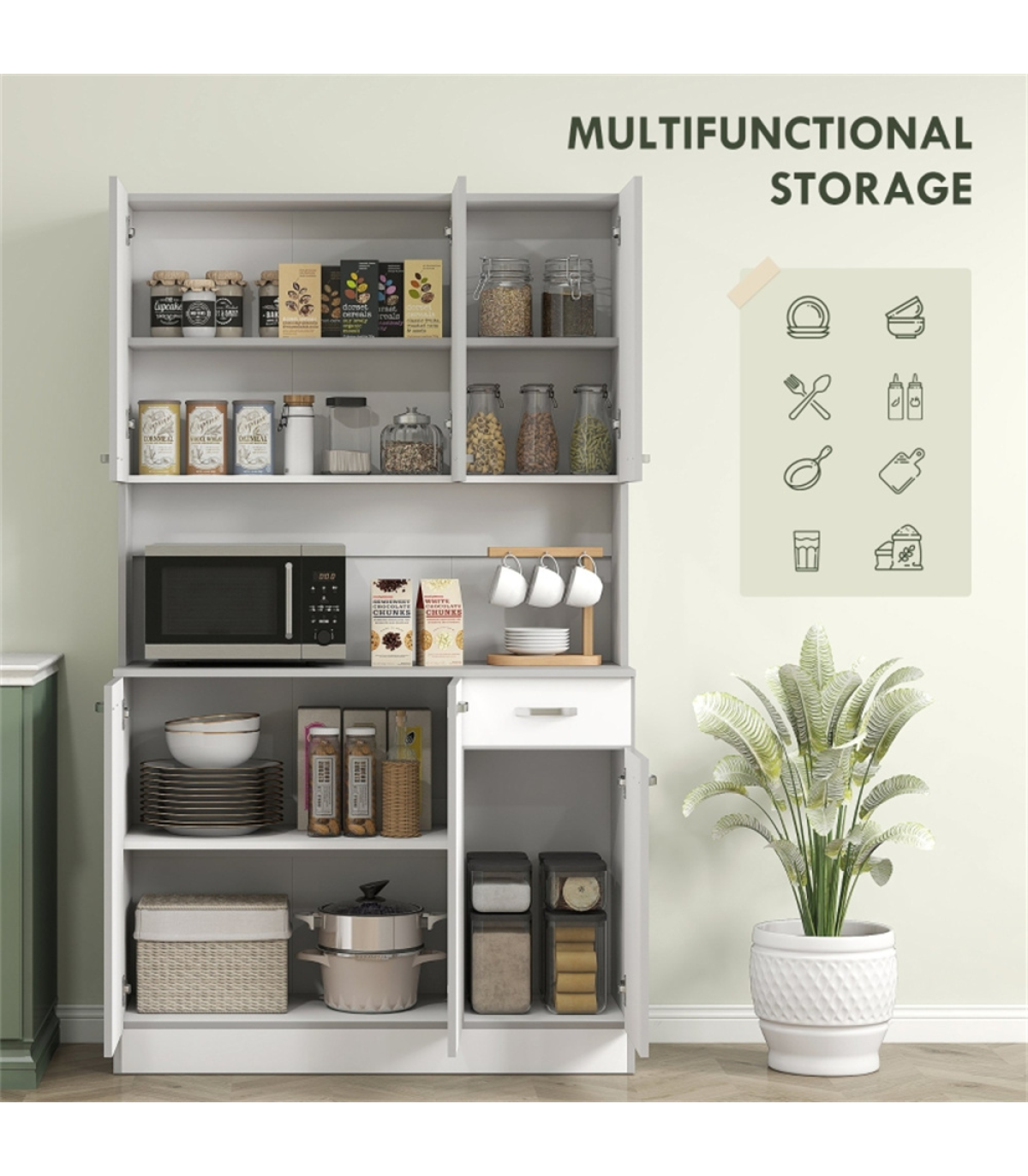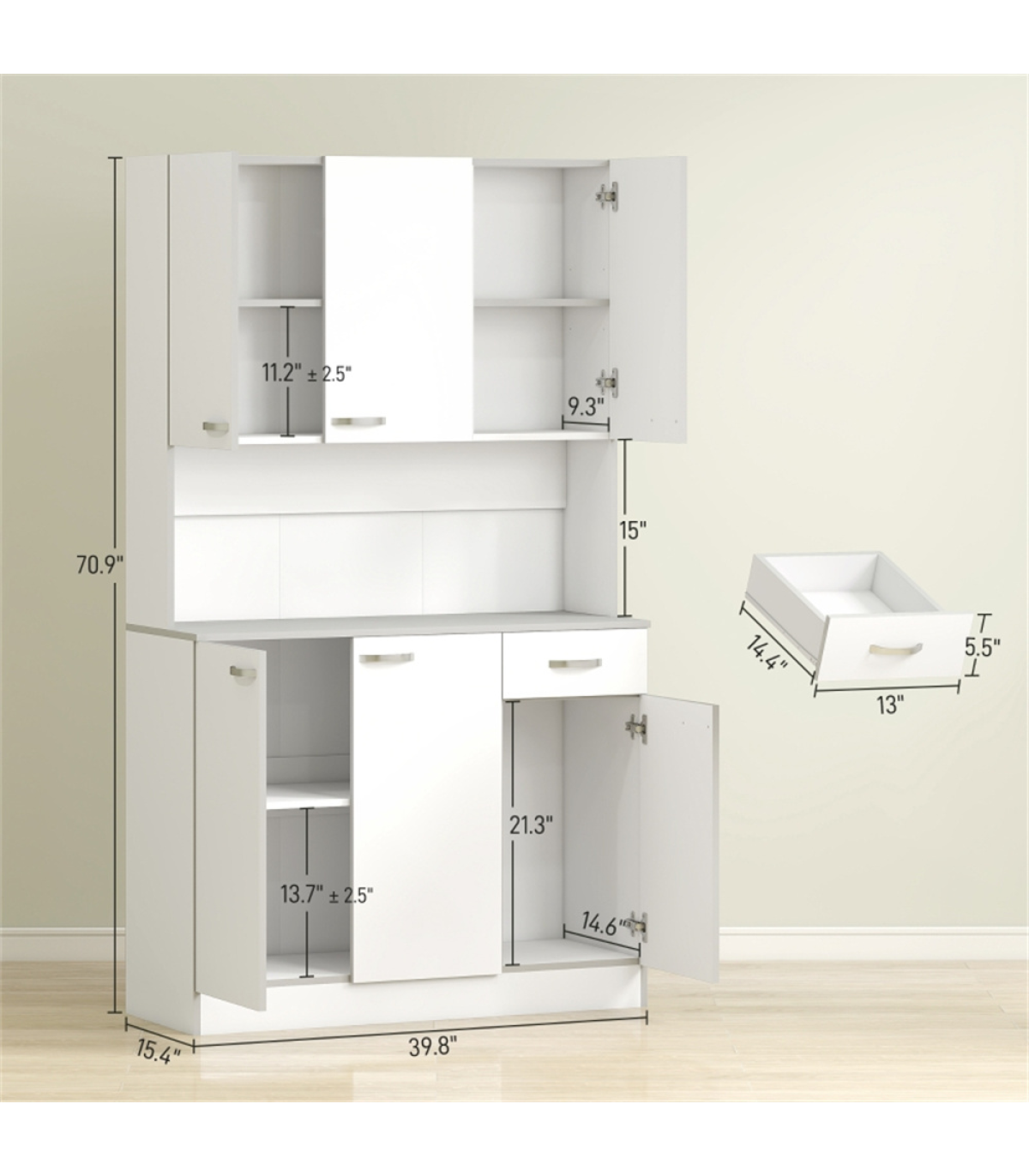 - - Multiple door cabinets with shelves give you lots of space to store dishes, cans, dry goods