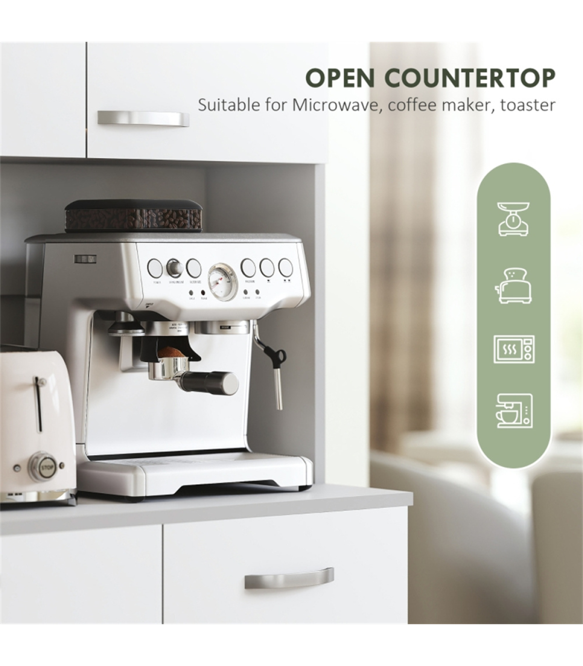 - - Open countertop for storing your microwave oven, toaster, coffee maker