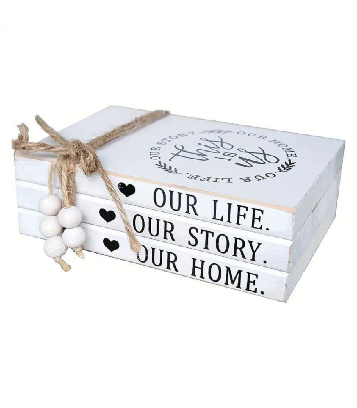 The decorative white book is a unique gift to match modern farmhouse or country themed decorations.