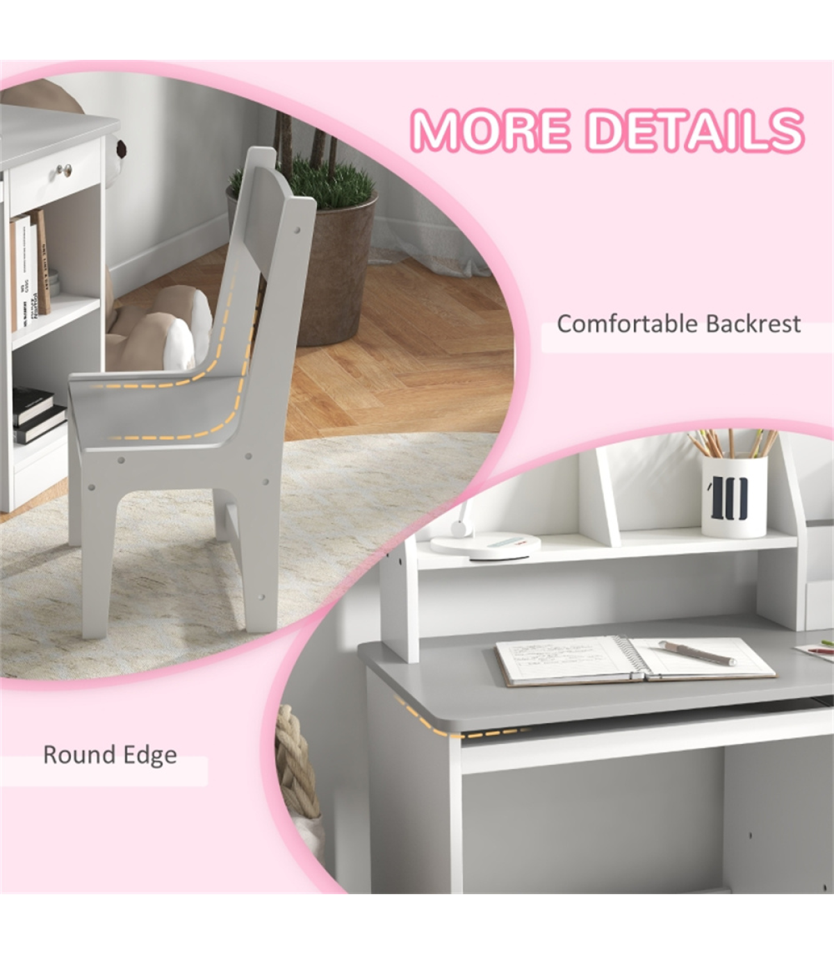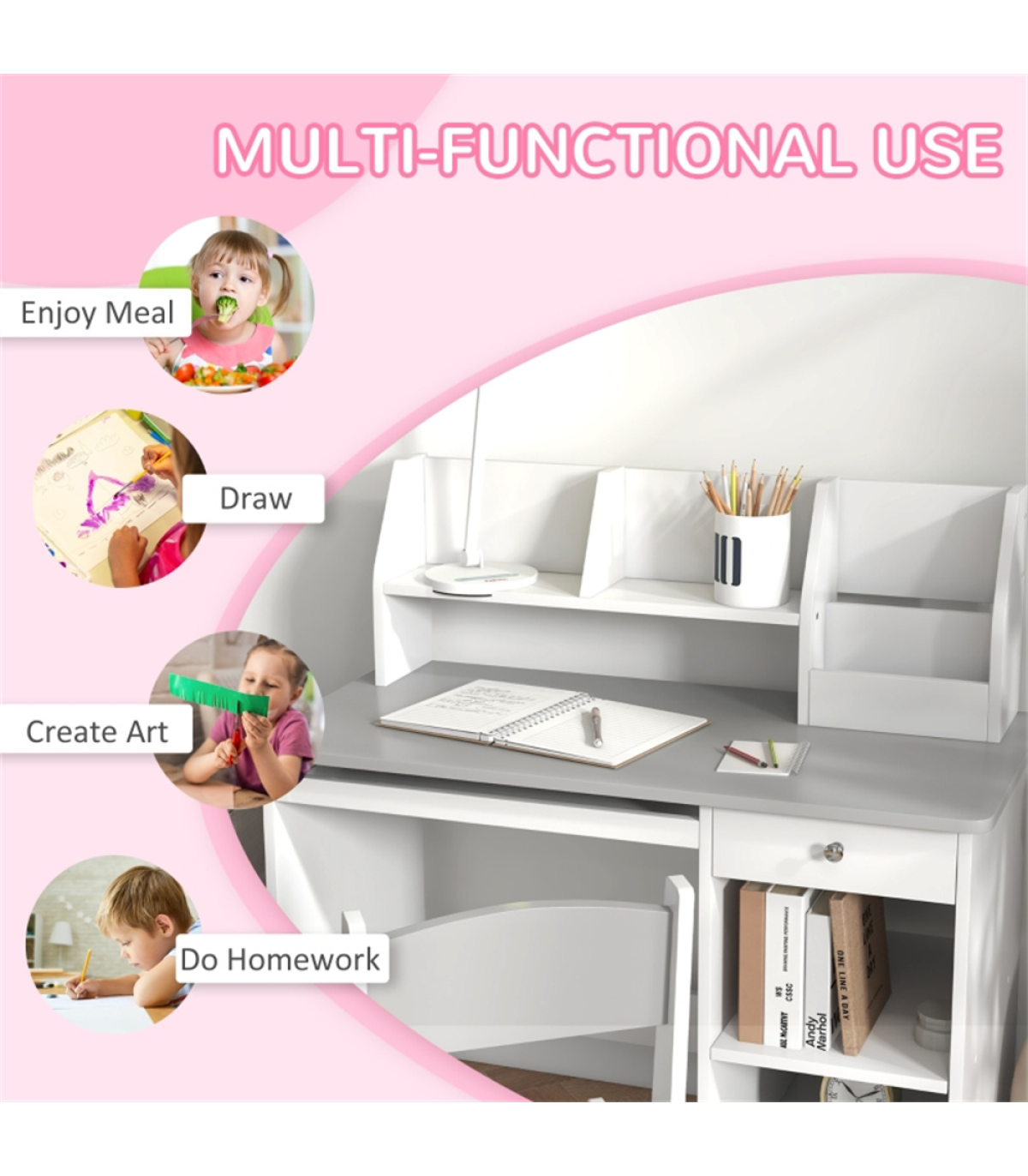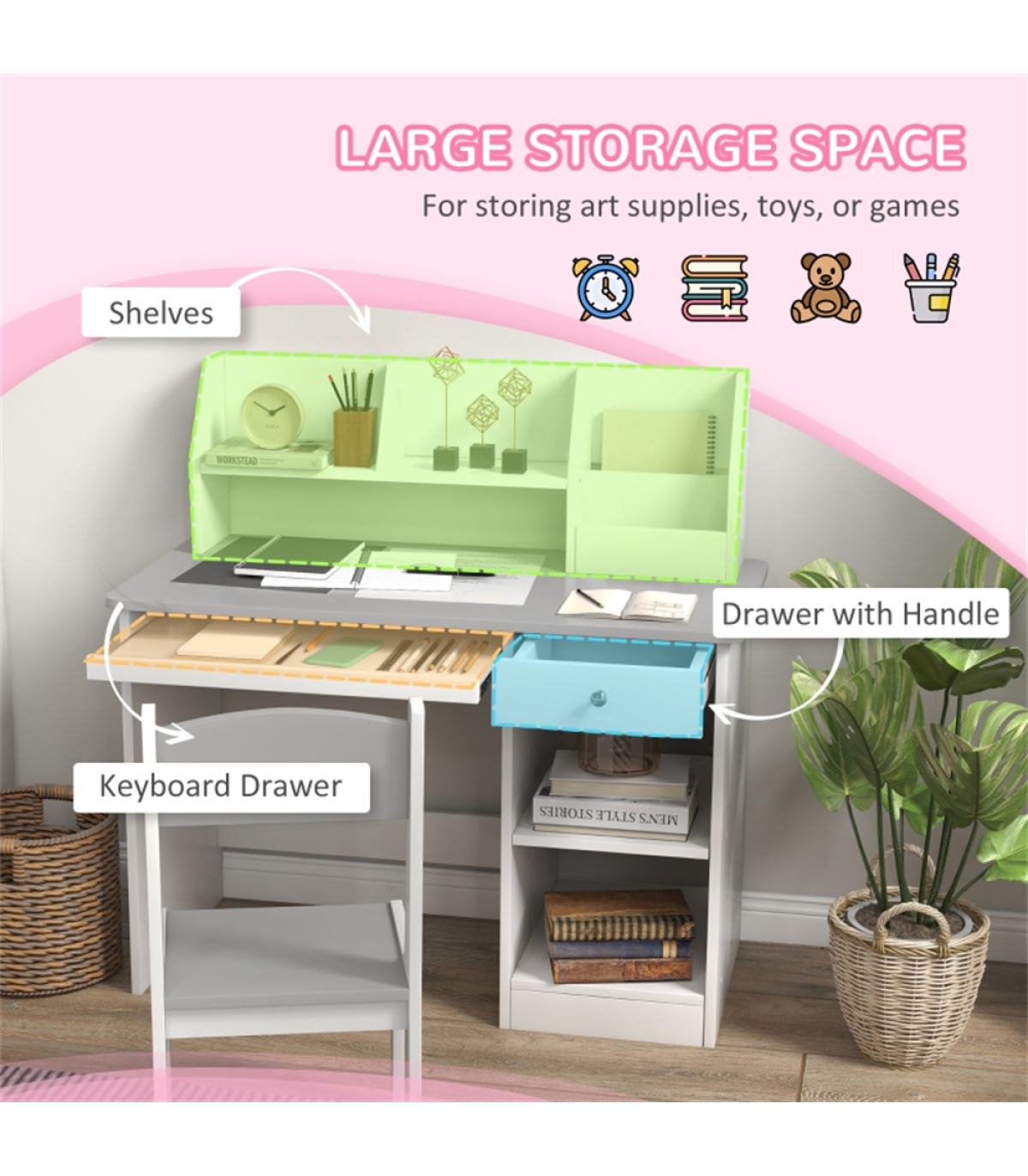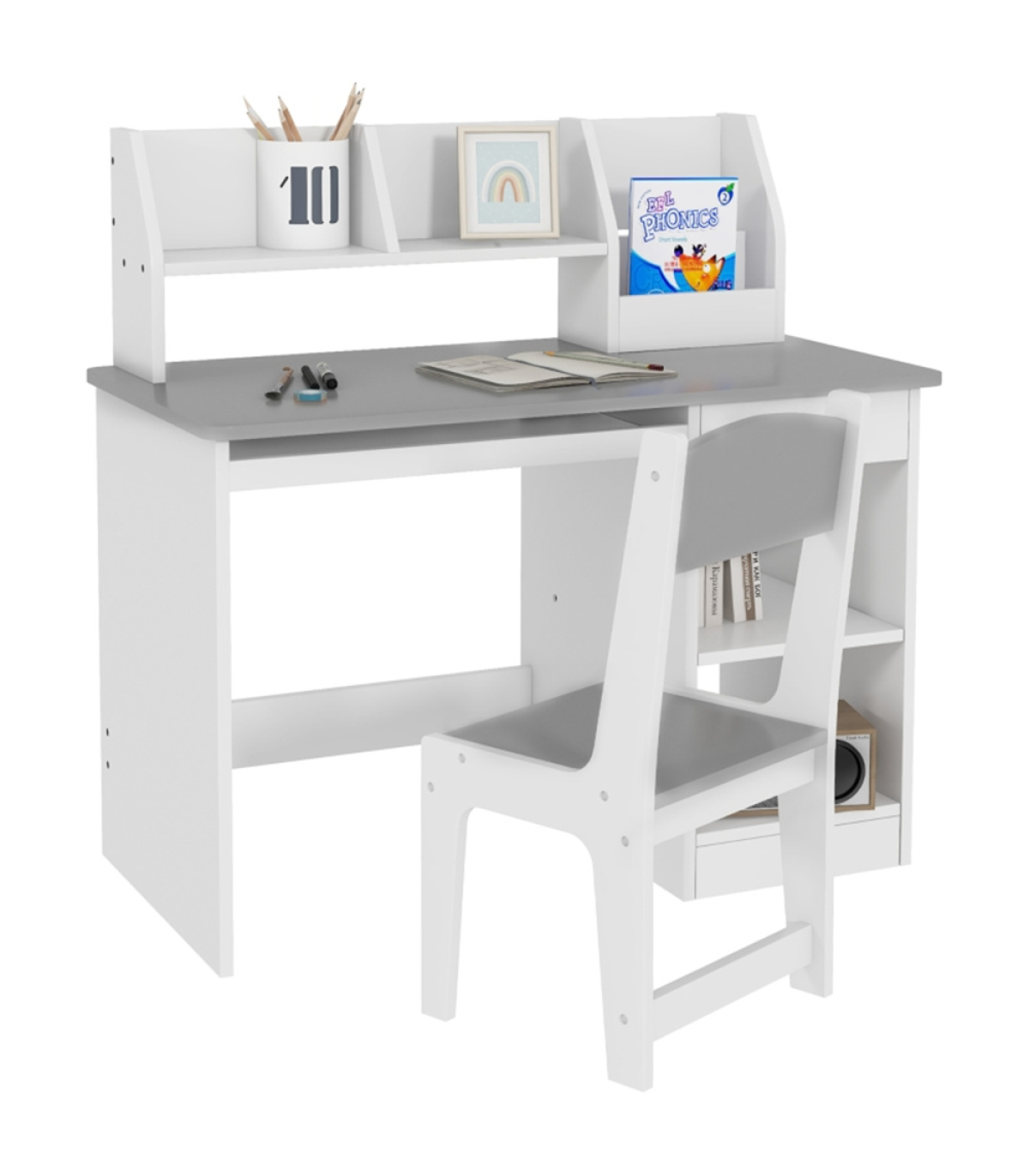 - - This 2-piece set includes a desk, and a matching chair fit for a kid ages 5 to 8