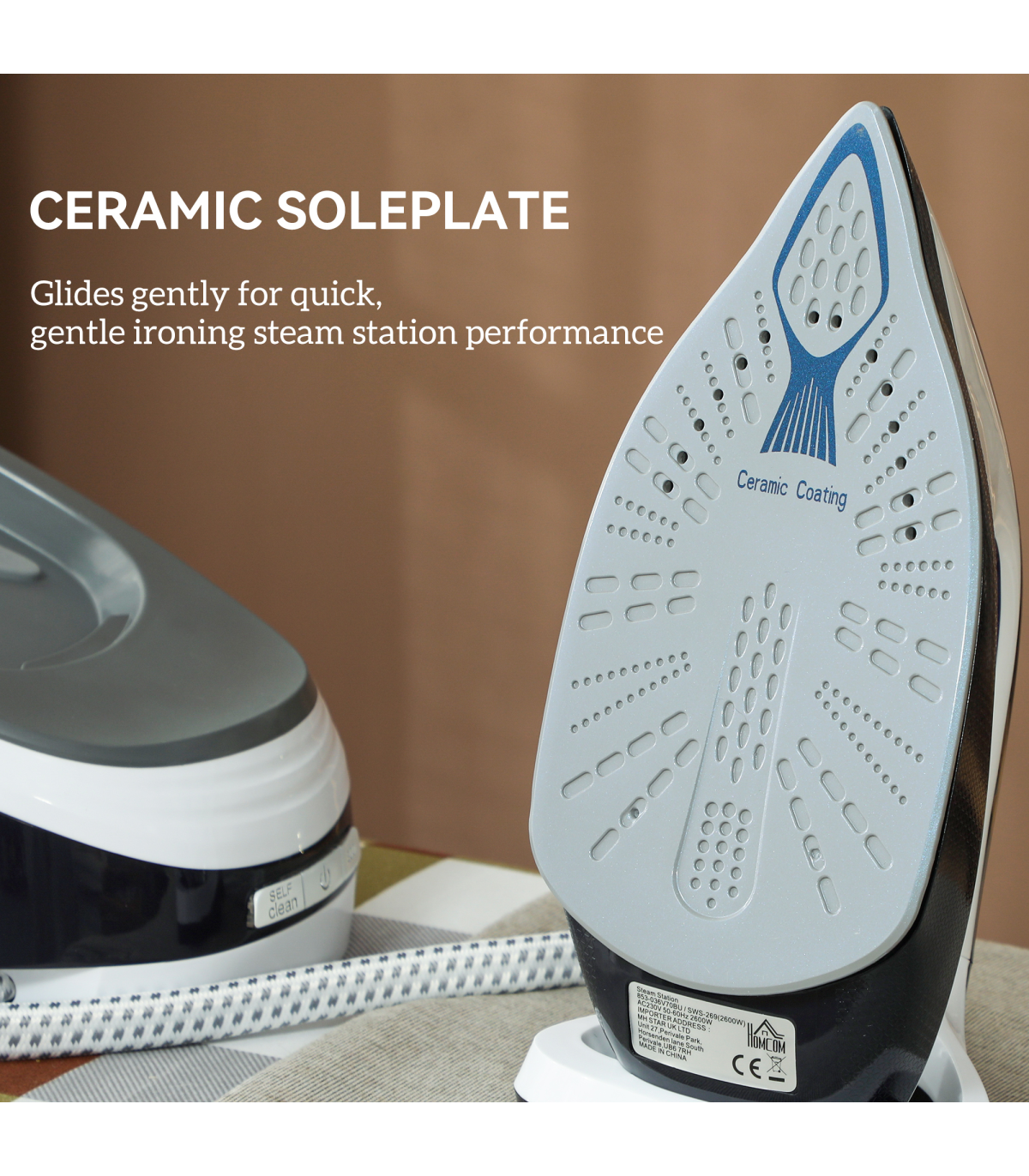 ● Smooth ceramic soleplate glides through tough wrinkles