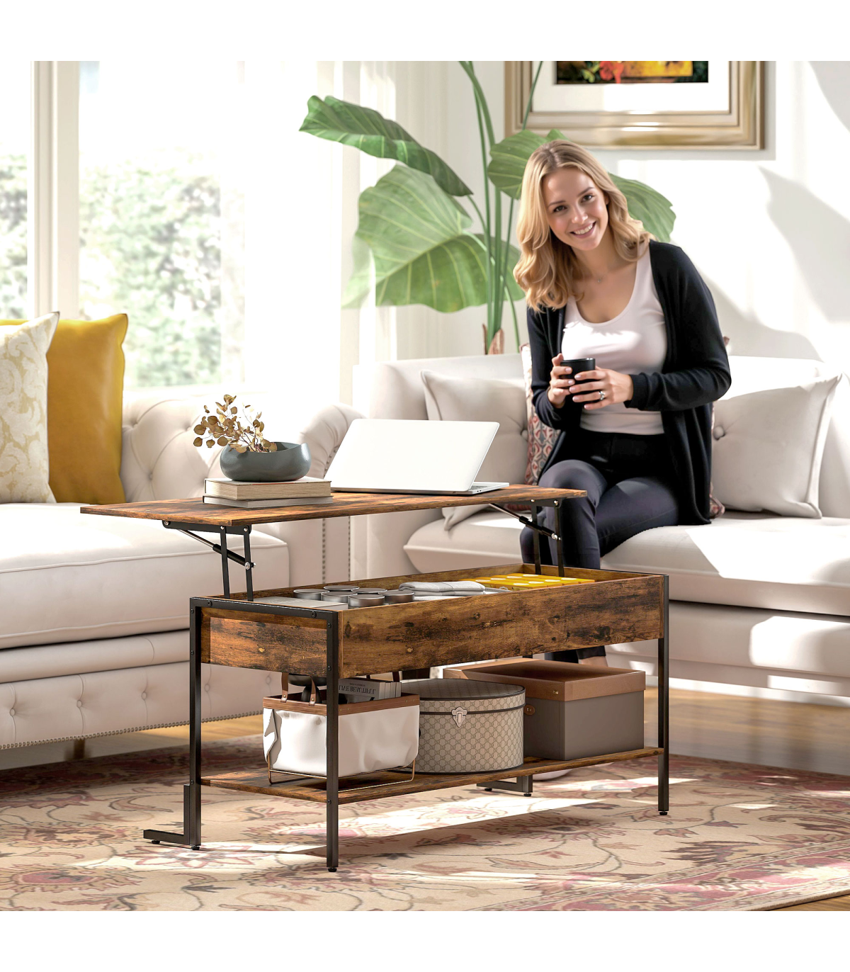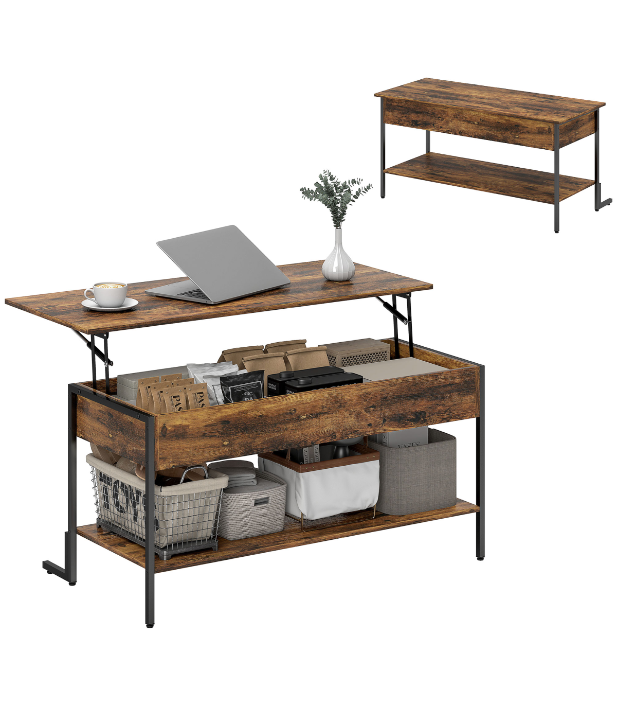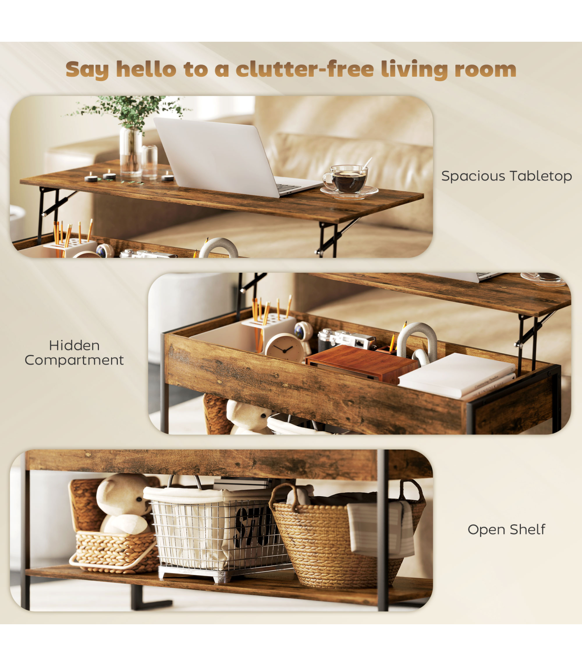 ● Compartment below tabletop and lower shelf: Lots of storage
