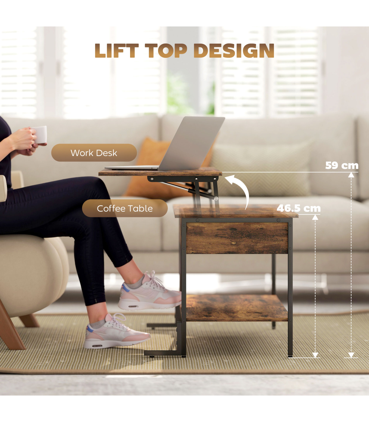 ● Overall Dimension (Lifted): 95W x 40D x 59H cm