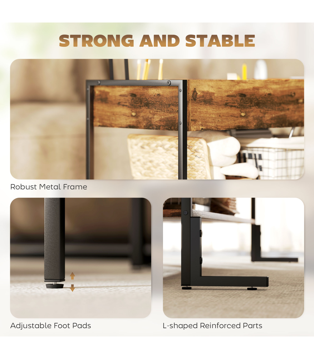 ● Metal frame for a strong core, with adjustable feet for balance