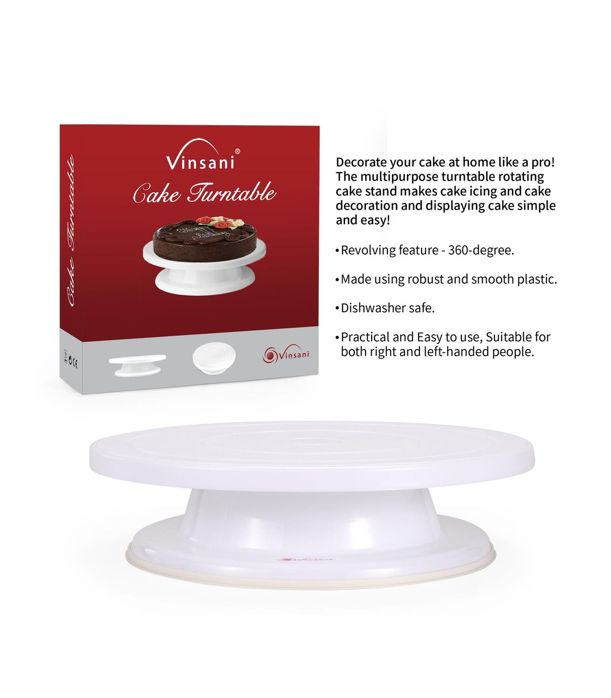 High quality material: Multi purpose rotating turntable for making cake easier to decorate, also suitable for displaying pastry and cupcakes