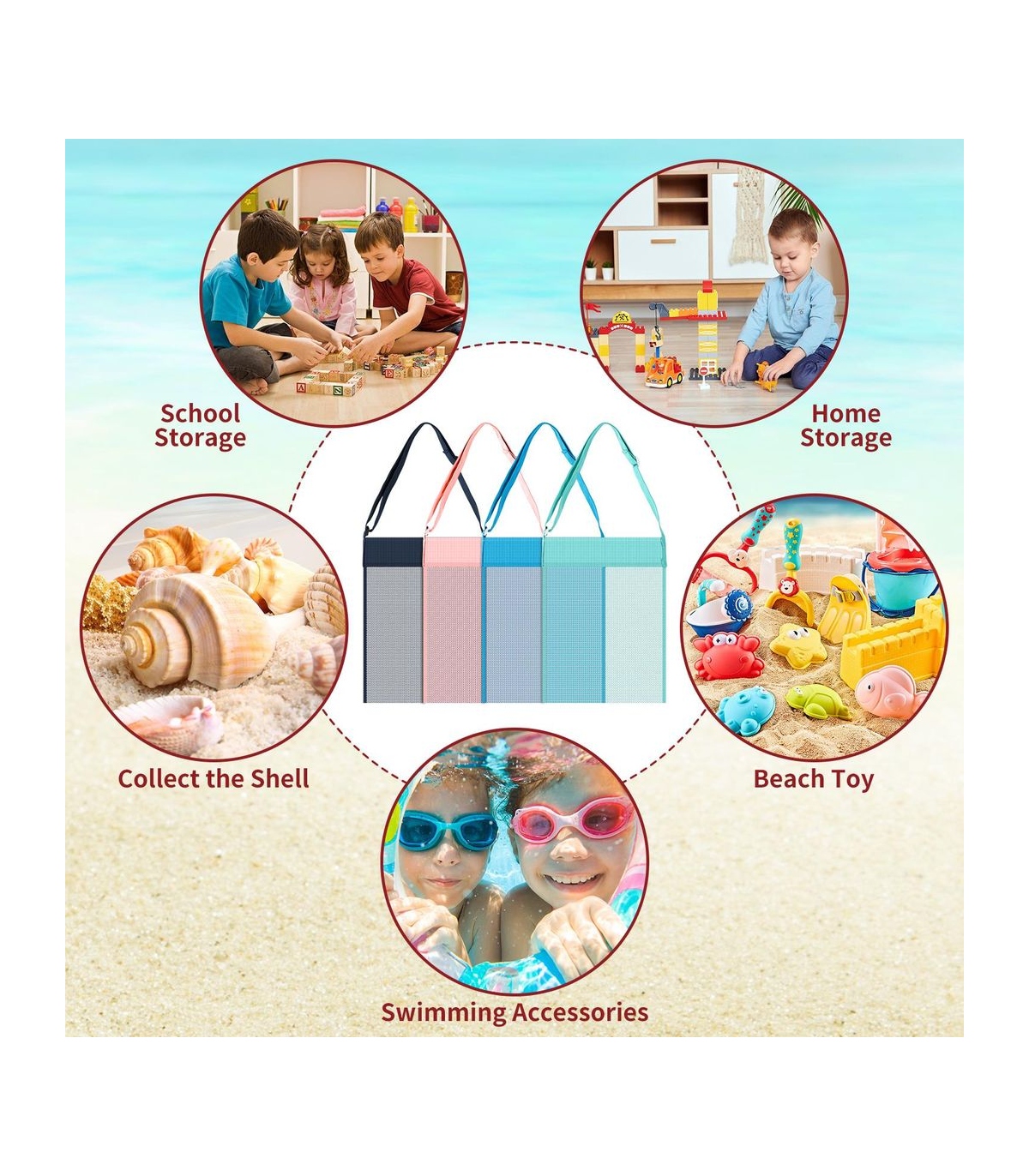 KEEP THE SAND AWAY: The mesh design can make the sand isolated with a quick shake. It's the best beach gear when you're out and about with friends or families to ocean beach trip.
