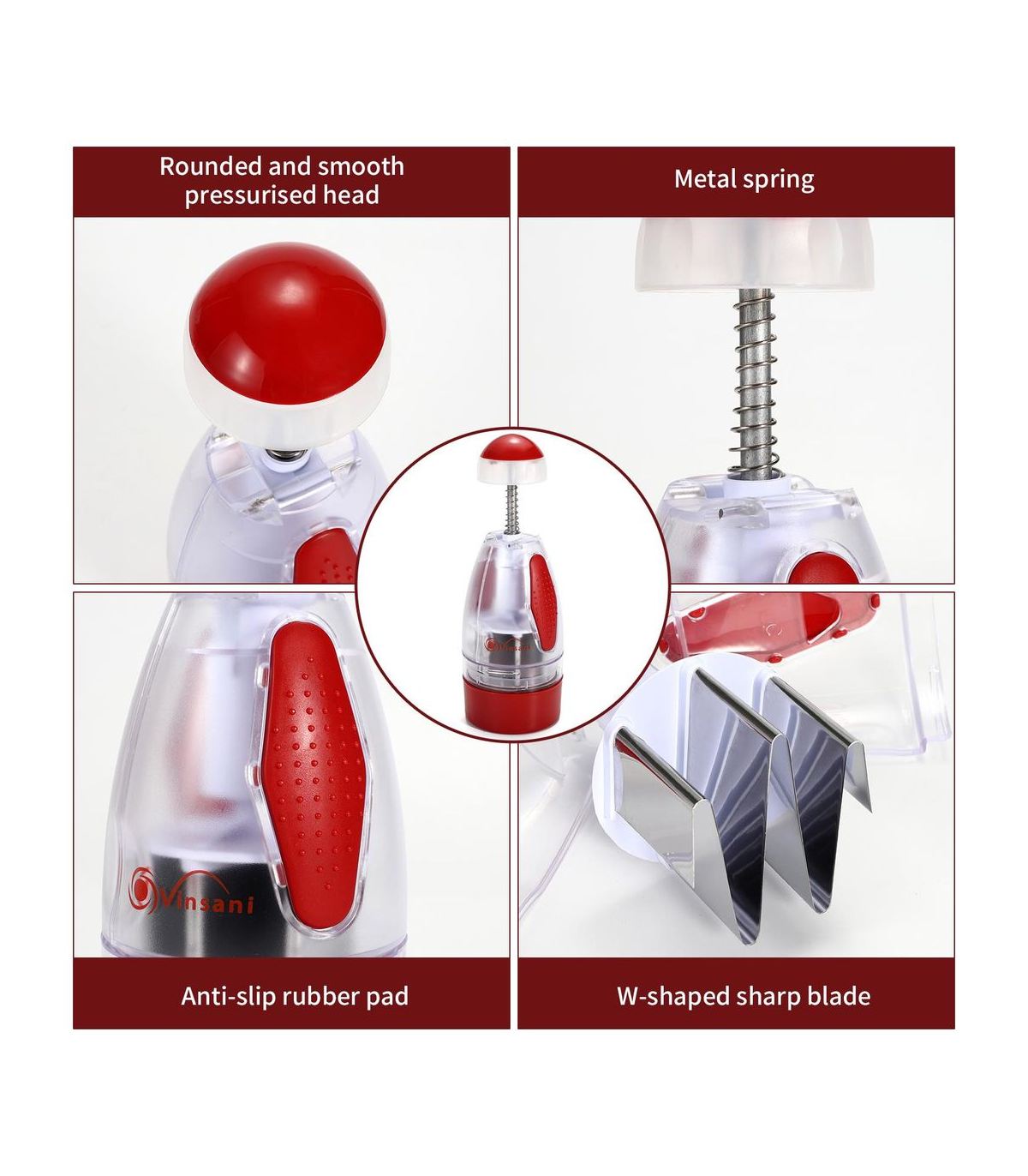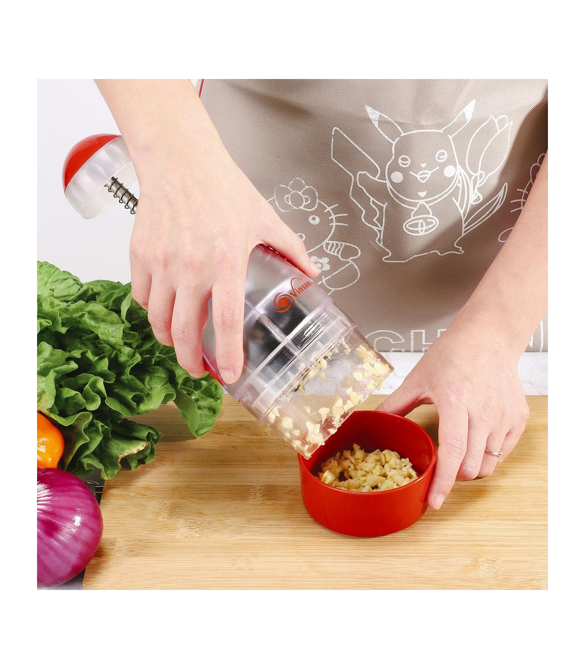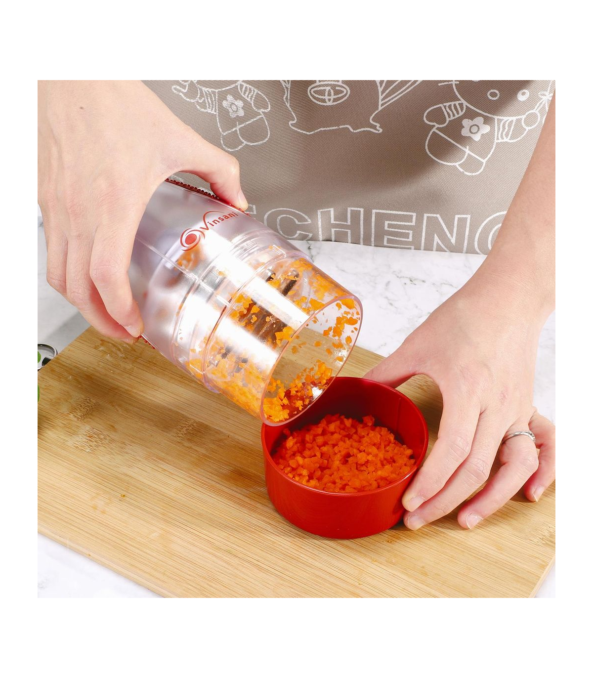QUICK & LABOUR FREE USE: Versatile and easy to use food chopper with soft press top for comfortable operation. Blades inside automatically twist with each press and chop vegetables. NO MORE MESS: Chopping on boards can be messy sometimes. Vinsani Chopper’s enclosed plastic cup under the blade captures chopped food. So you can chop without spreading the shreds around in the kitchen. EXTRA SHARP BLADES: Blades, made of stainless steel, are extra sharp for precise and efficient chopping. Easily chop your food as finely as you want in mere seconds. PERFECT SIZE: Compact design makes it easy to store in your kitchen. H6 x L9 x W9 cm SAFE TO USE: Chop without cutting your fingers as sharp blade is in protective casing. Grip patches on the chopper ensure it does not move while operating.